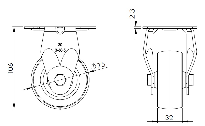 | Nylon Wheel Diameter × Wheel Width 75 x 32mm |
