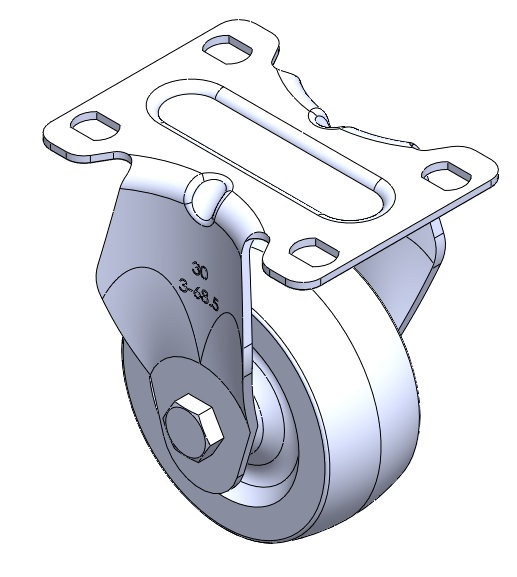 | Rigid Caster with Stamping Fabricated Caster Fork and 75 x 45 mm (3" x 1-3/4") Bolt Hole Spacing. Zine-Plated, Mounting Type - Top Plate. Cast Iron core with High-Quality Resilient Rubber Wheel Tread. Bearing - Plain Bearing. |