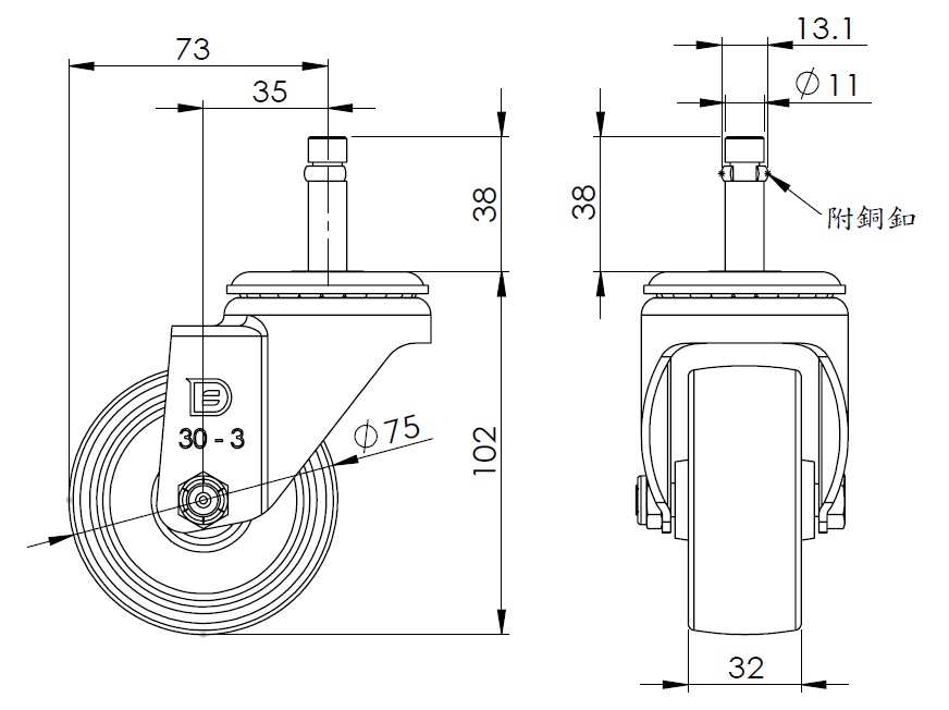 | PP Wheel Diameter × Wheel Width 75 x 32mm |