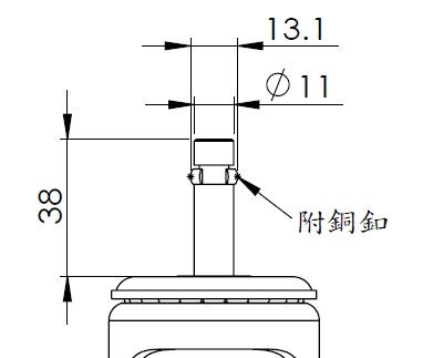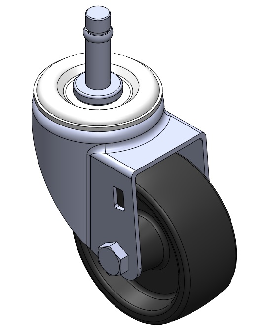 | Swivel Caster with Riveted Stamping Fork - Ø11x38L Zine-Plated, Mounting Type - Cylindrical Stem, brass buckle Polypropylene core and Wheel Tread Black, Plain Bearing. |