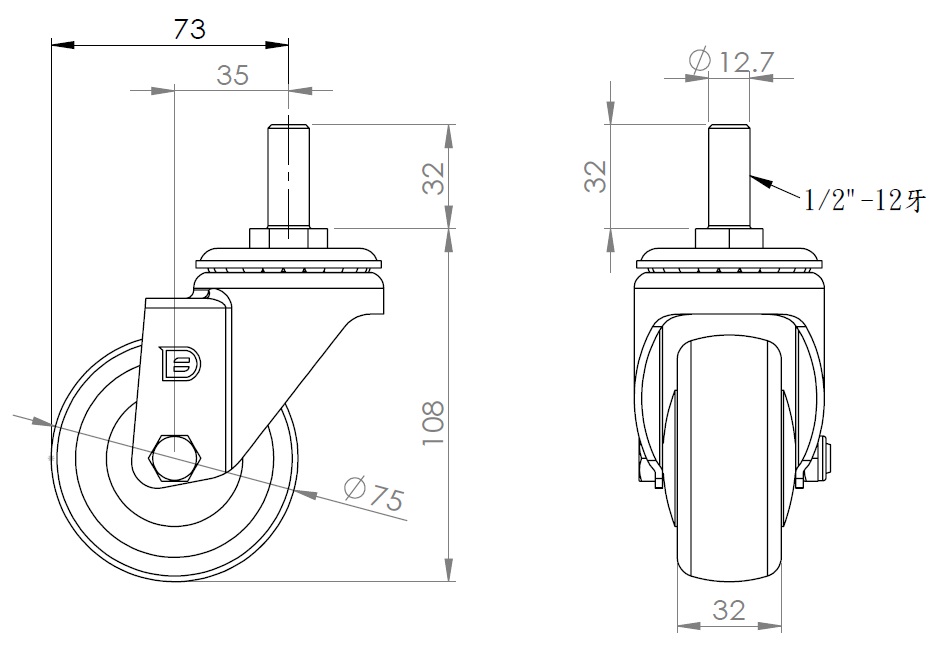 1/2"-12牙