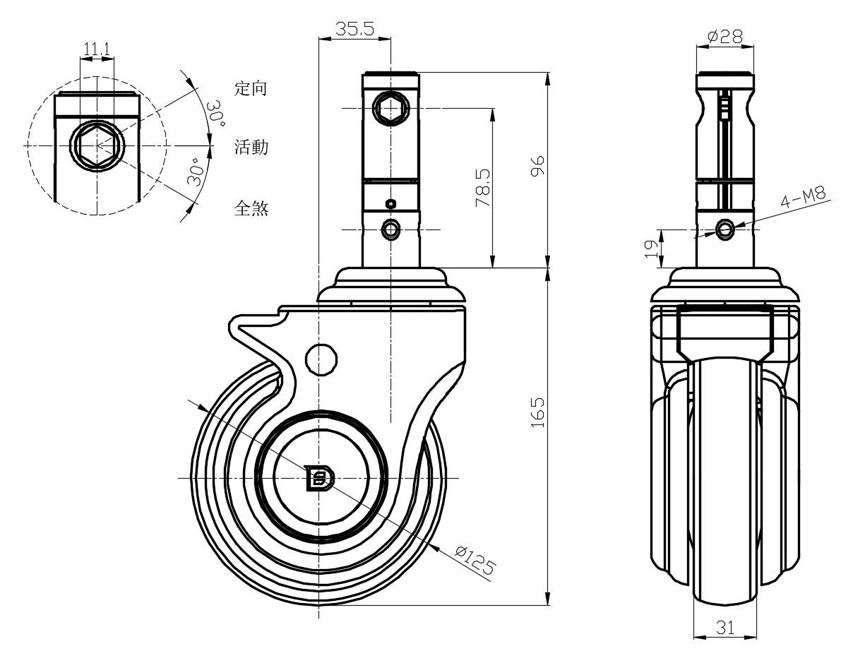 | Wheel tread: Thermoplastic rubber elastomer (TPR) Wheel Center: Made of high-quality impact-resistant polypropylene Drawings are for reference only and may differ from the product |