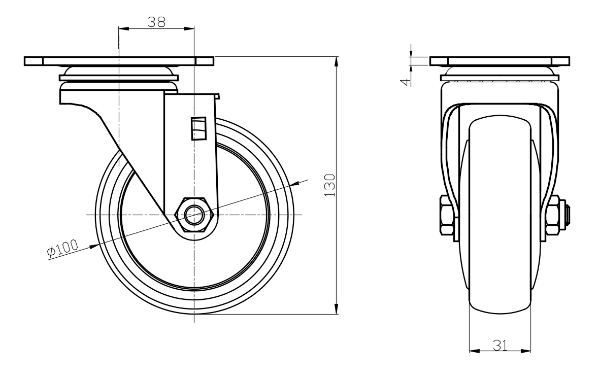 | 活动式脚轮,底板铆合冲压脚架—高级孔