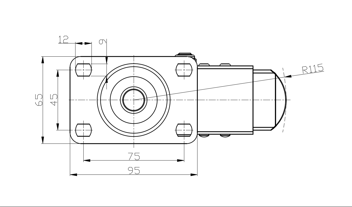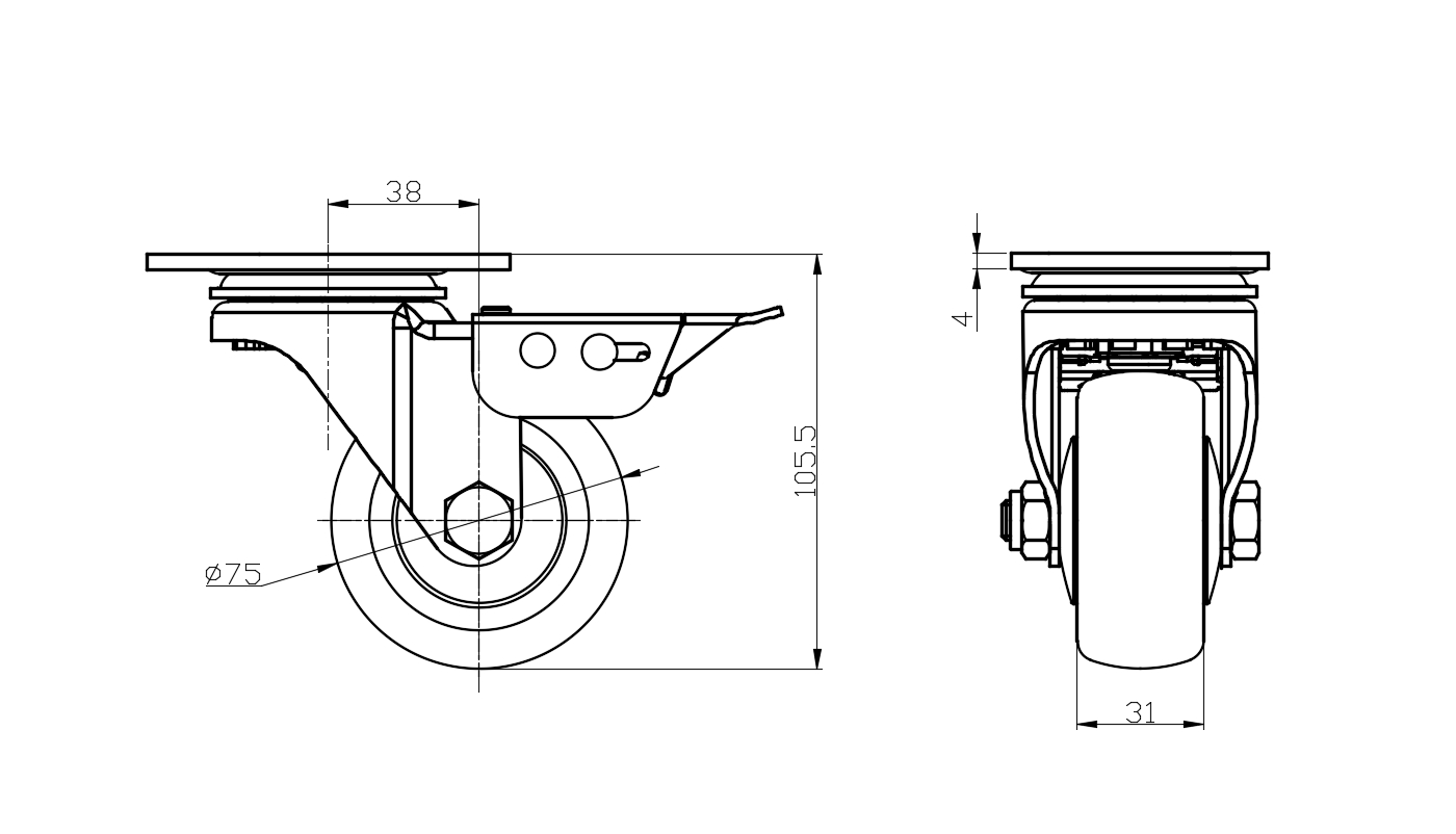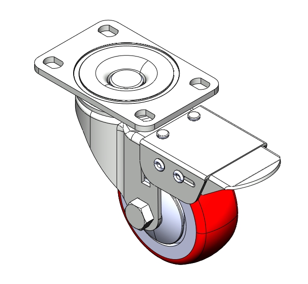 表面镀锌,底板式(4T)安装装置 耐冲击聚丙烯轮芯,热塑性弹性体(TPR)轮面 灰红色,轮子轴承 — 精密滚珠。 |