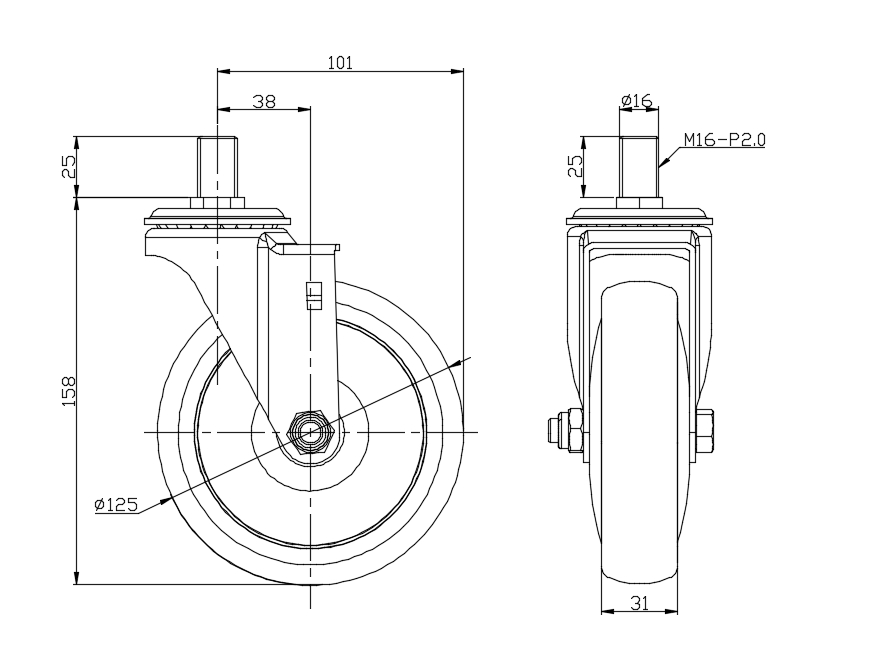 | 活动式脚轮,牙心铆合冲压脚架—M16-P2.0