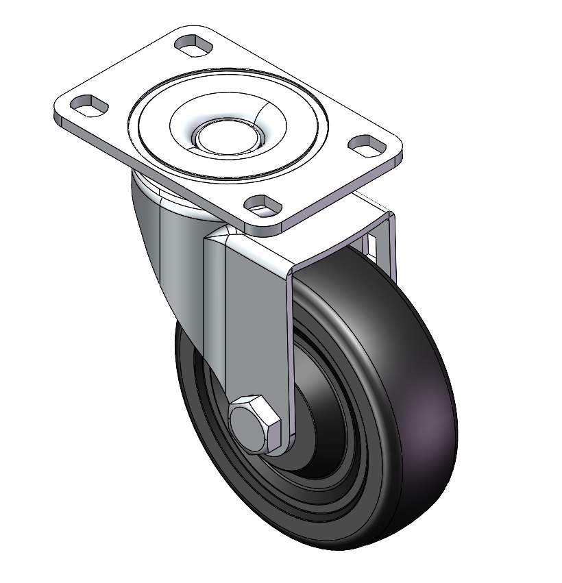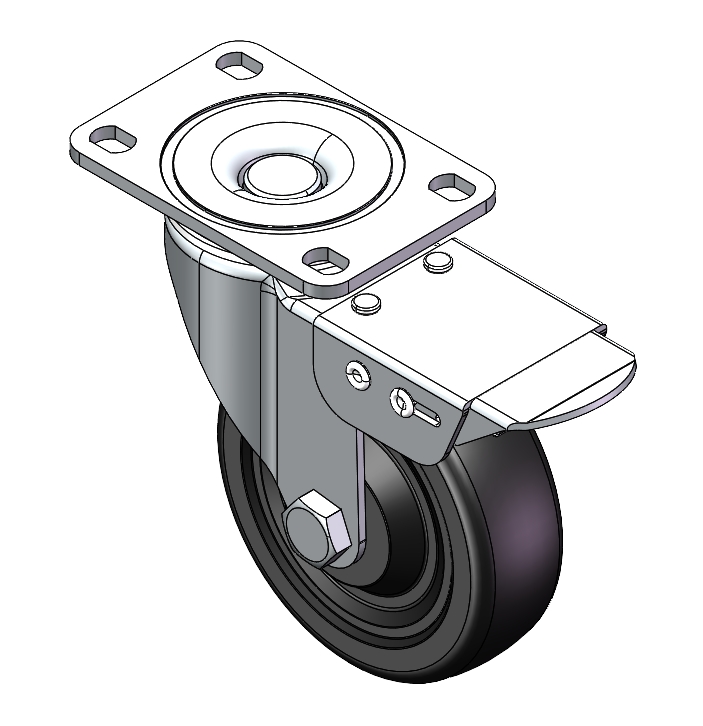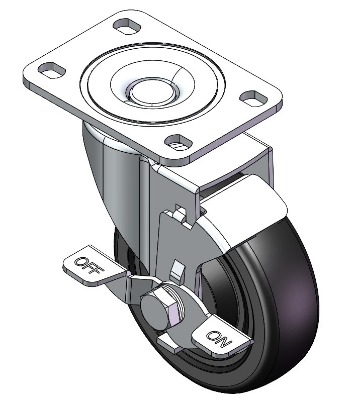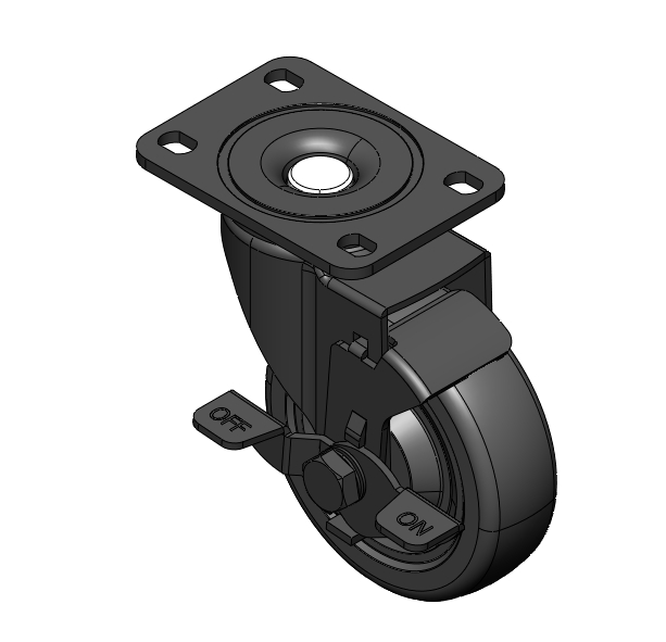 | Rigid Caster, Stamping Fabricated Caster Fork - 75 x 45 mm (3" x 1-3/4") Bolt Hole Spacing Extended control lever surface, Mounting Type - Top Plate Reinforced Polypropylene, High-Quality Resilient Rubber Wheel Tread Wheel - Plain Bearing |