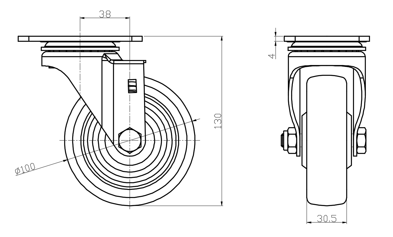 | Rubber Wheel Diameter × Wheel Width 100 x 30.5mm |