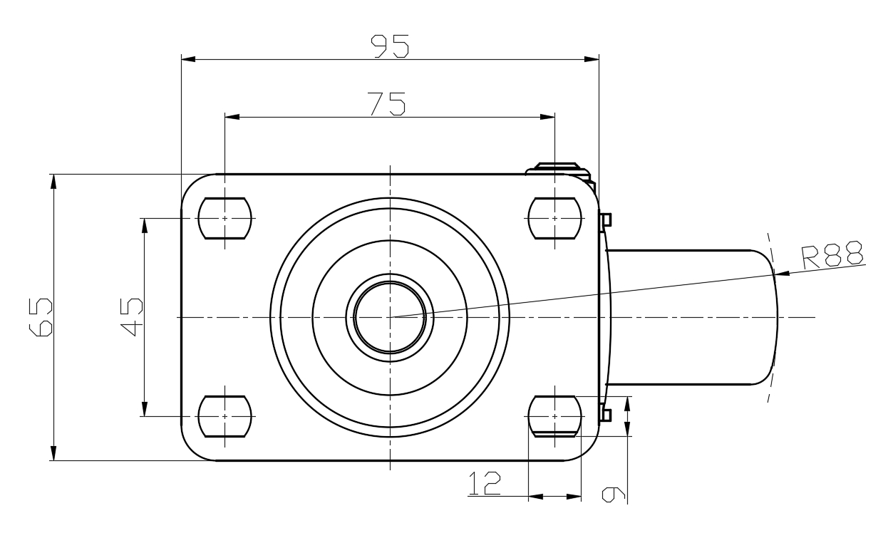 |   Wheel Tread: high quality elastic rubber				 Wheel Center: Thermoplastic (PA6) Drawings are for reference only and may differ from the product  |