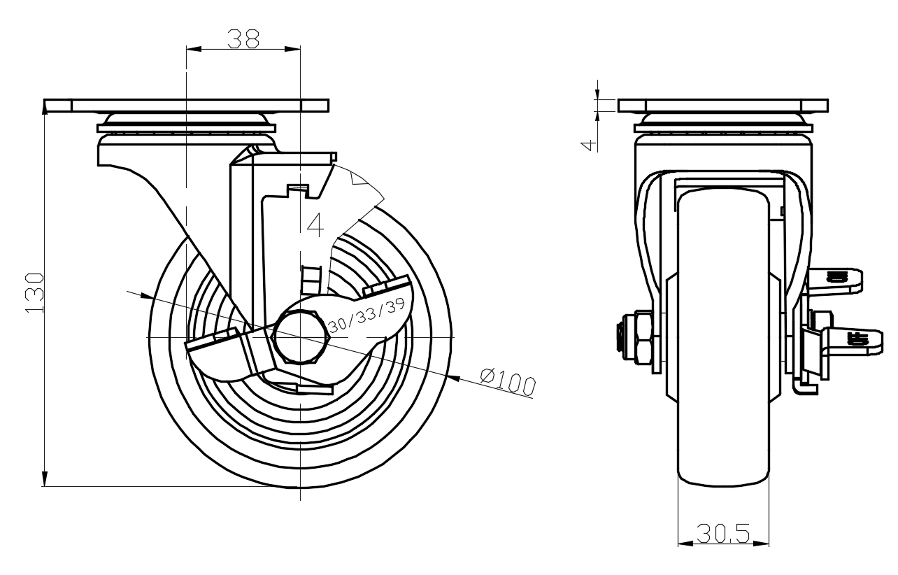 | Rubber Wheel Diameter × Wheel Width 100 x 30.5mm |