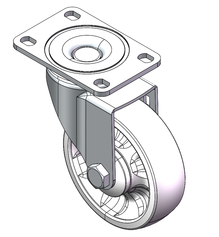 Zine-Plated, Top Plate (4T) Mounting Type system. Reinforced thermoplastic Wheel Center and Wheel Tread. Bearings—Ball Bearings. |