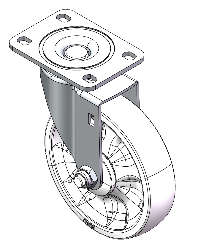 Zine-Plated, Top Plate (4T) Mounting Type system Reinforced thermoplastic Wheel Center and Wheel Tread Bearing—Ball Bearing. |