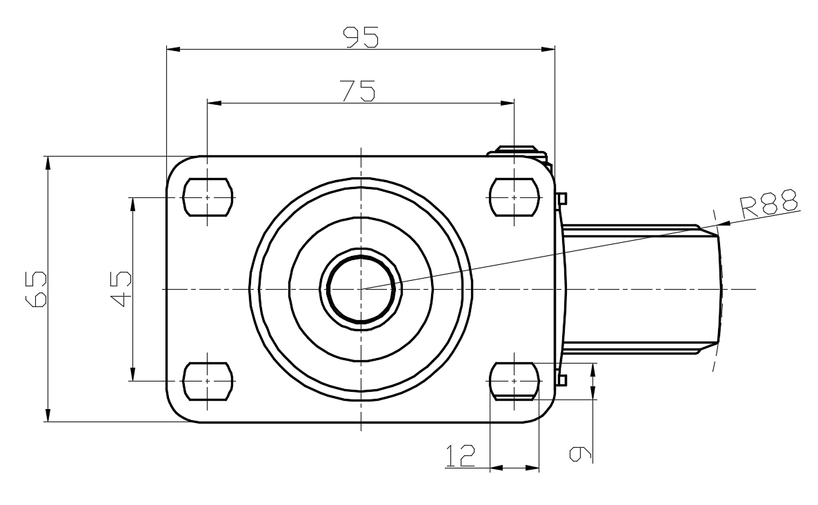 Swivel Caster with Riveted Fork and Stamping Fork—75 x 45 mm (3" x 1-3/4") Bolt Hole Spacing