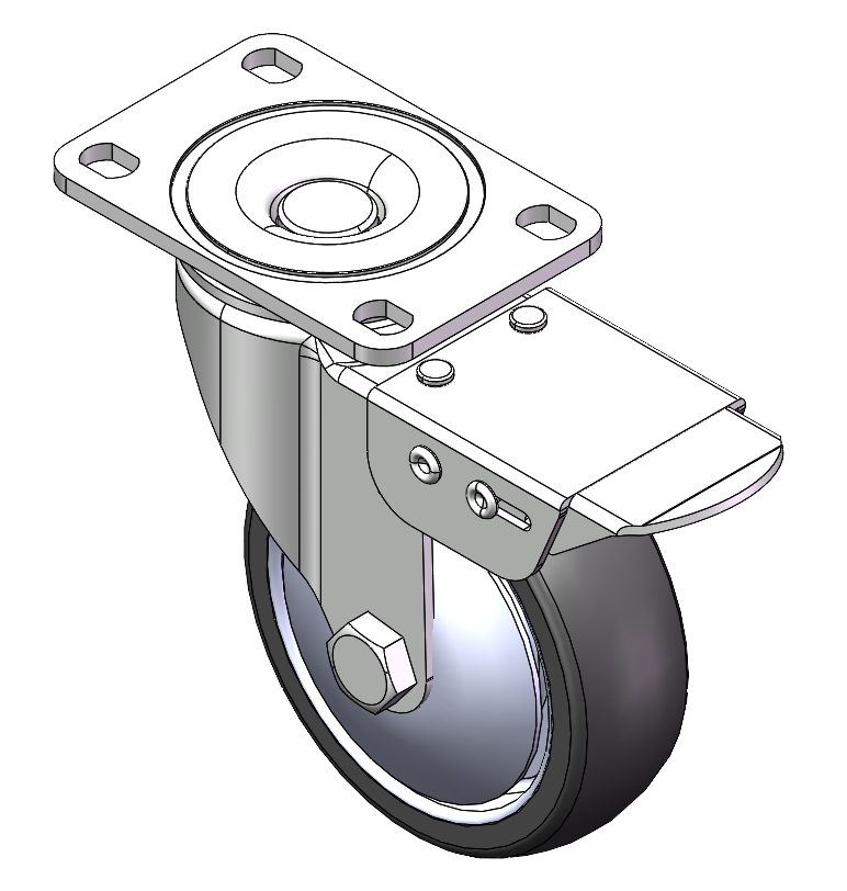 Zine-Plated, Mounting Type - Top Plate. High-Quality Impact-Resistant Polypropylene core with High-Quality Reinforced Polypropylene Rubber (TPR) Wheel Tread. Pearl-finish dark gray. Bearings: Ball Bearings.  |