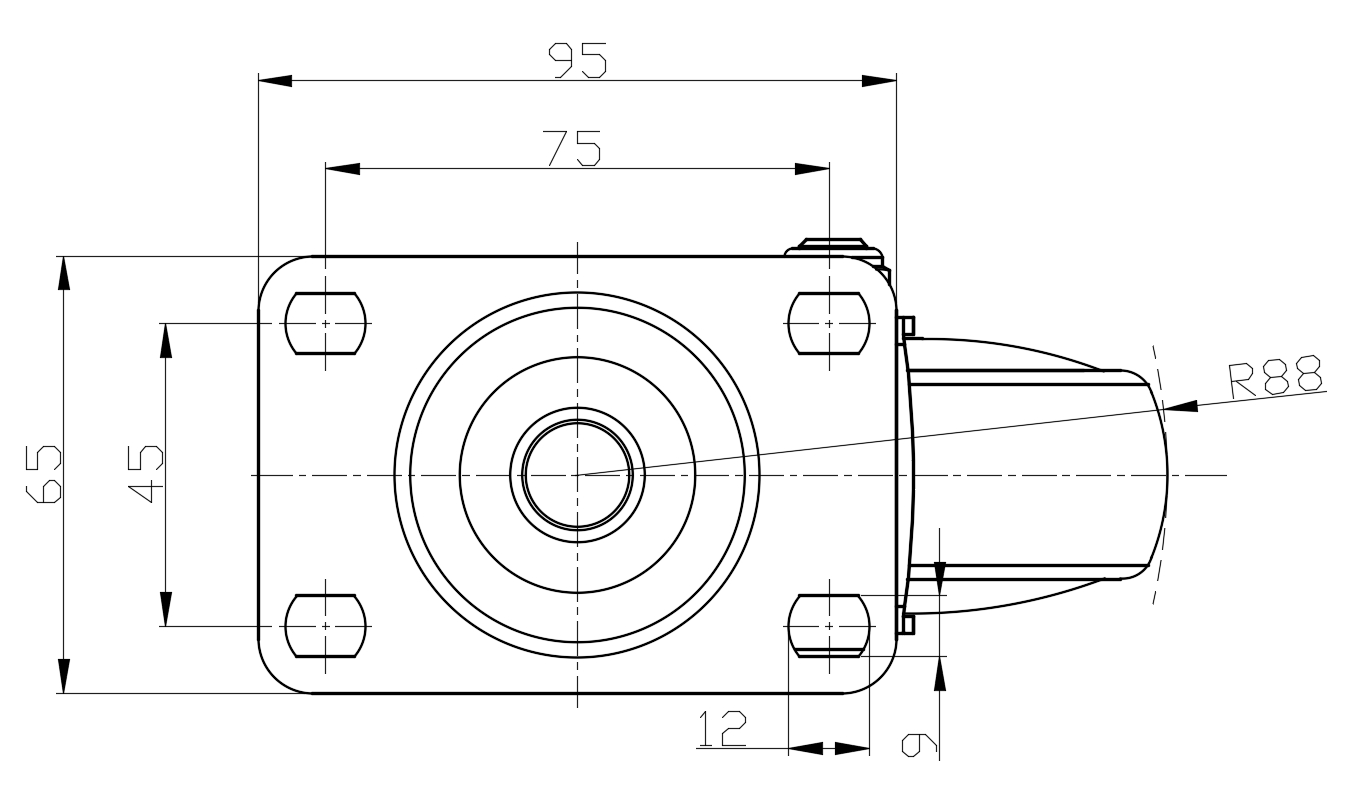 Swivel Caster with Riveted Fork and Stamping Fork—75 x 45 mm (3" x 1-3/4") Bolt Hole Spacing