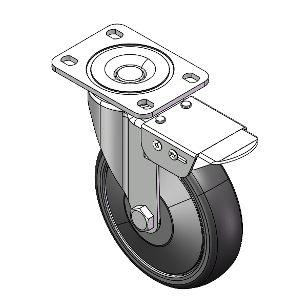 Zine-Plated, Mounting Type - Top Plate. High-Quality Impact-Resistant Polypropylene core with High-Quality Reinforced Polypropylene Rubber (TPR) Wheel Tread. Pearl-finish dark gray. Bearings: Ball Bearings.  |