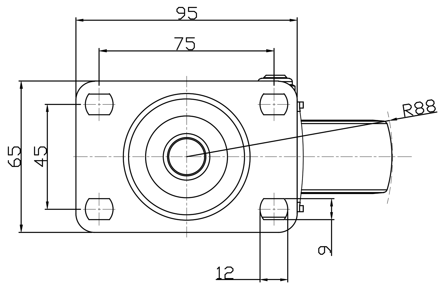 Swivel Caster, Top Plate Riveted and Stamping with 75 x 45 mm (3" x 1-3/4") Bolt Hole Spacing