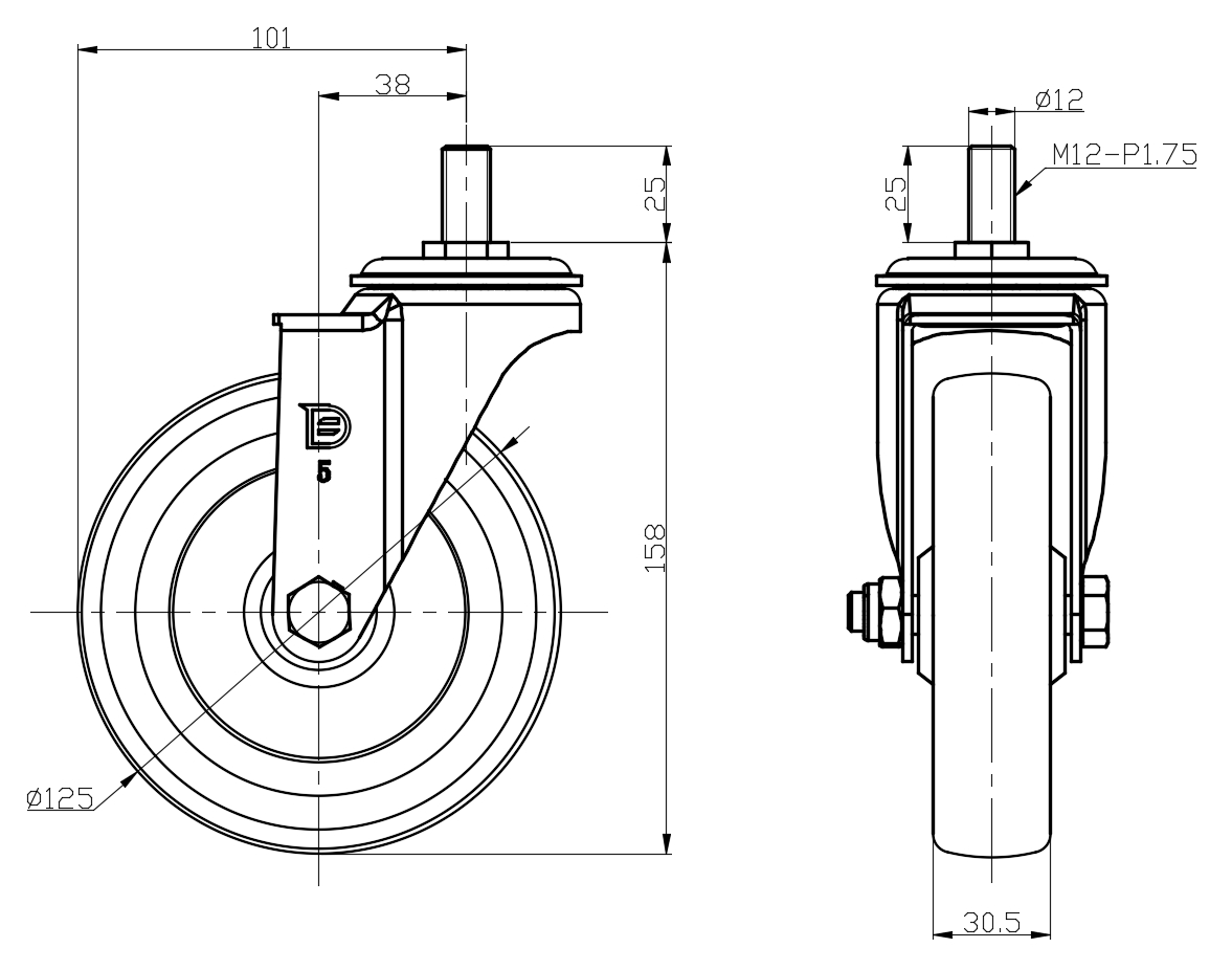 | Rubber Wheel Diameter × Wheel Width 125 x 30.5mm |
