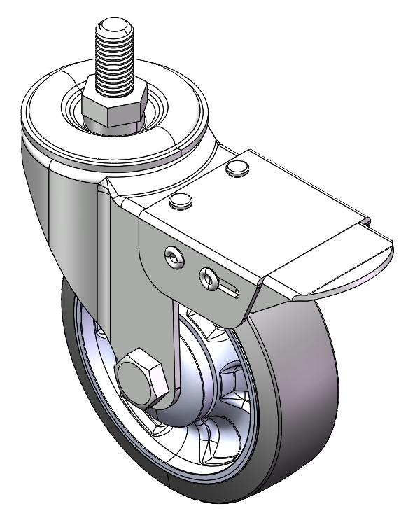 Casters with a Total Brake and With locking system. Threaded Stem Riveted Pressed Fork—M12-P1.75.
