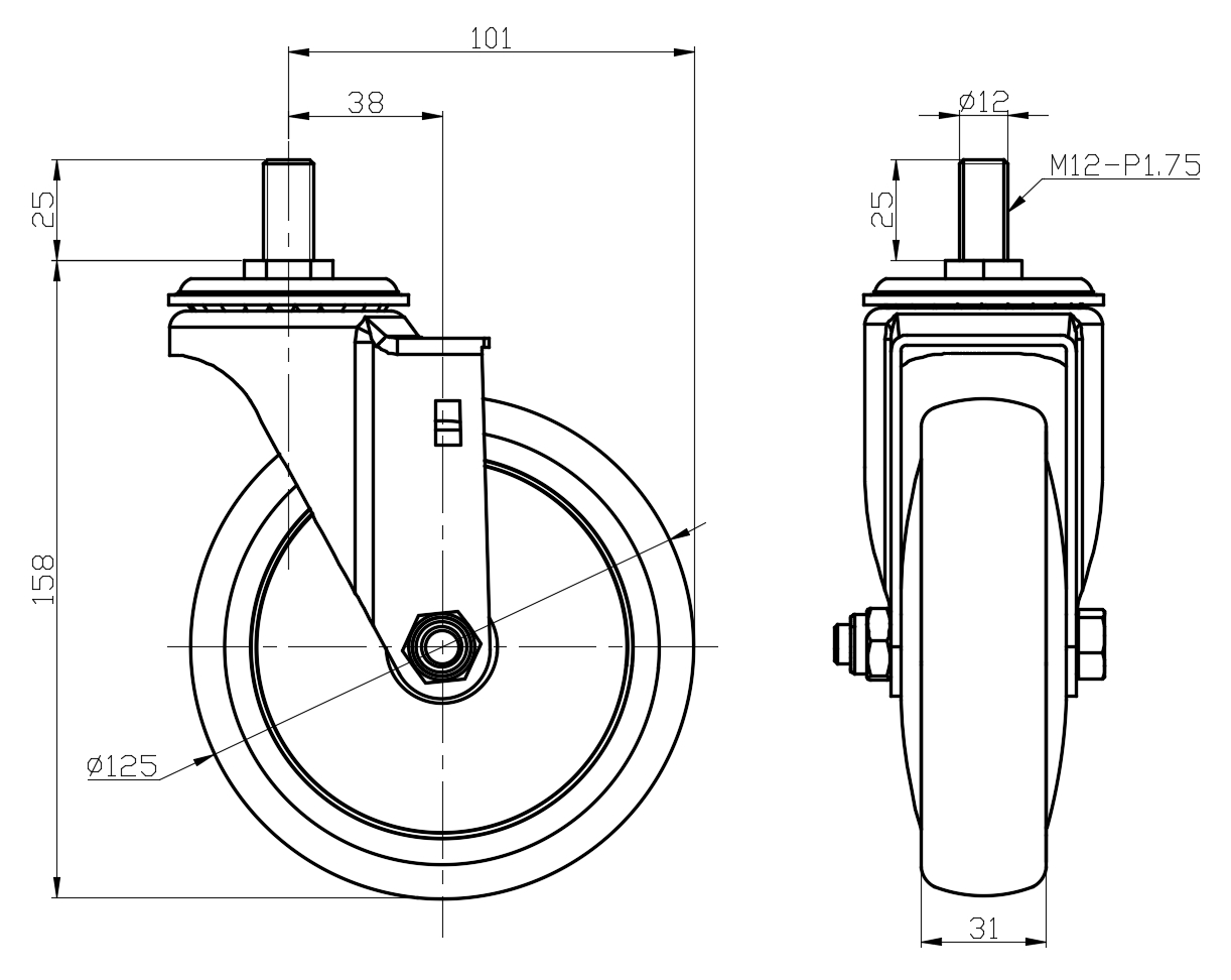 Swivel Caster, thread-Riveted Stamping Fork—M12-P1.75