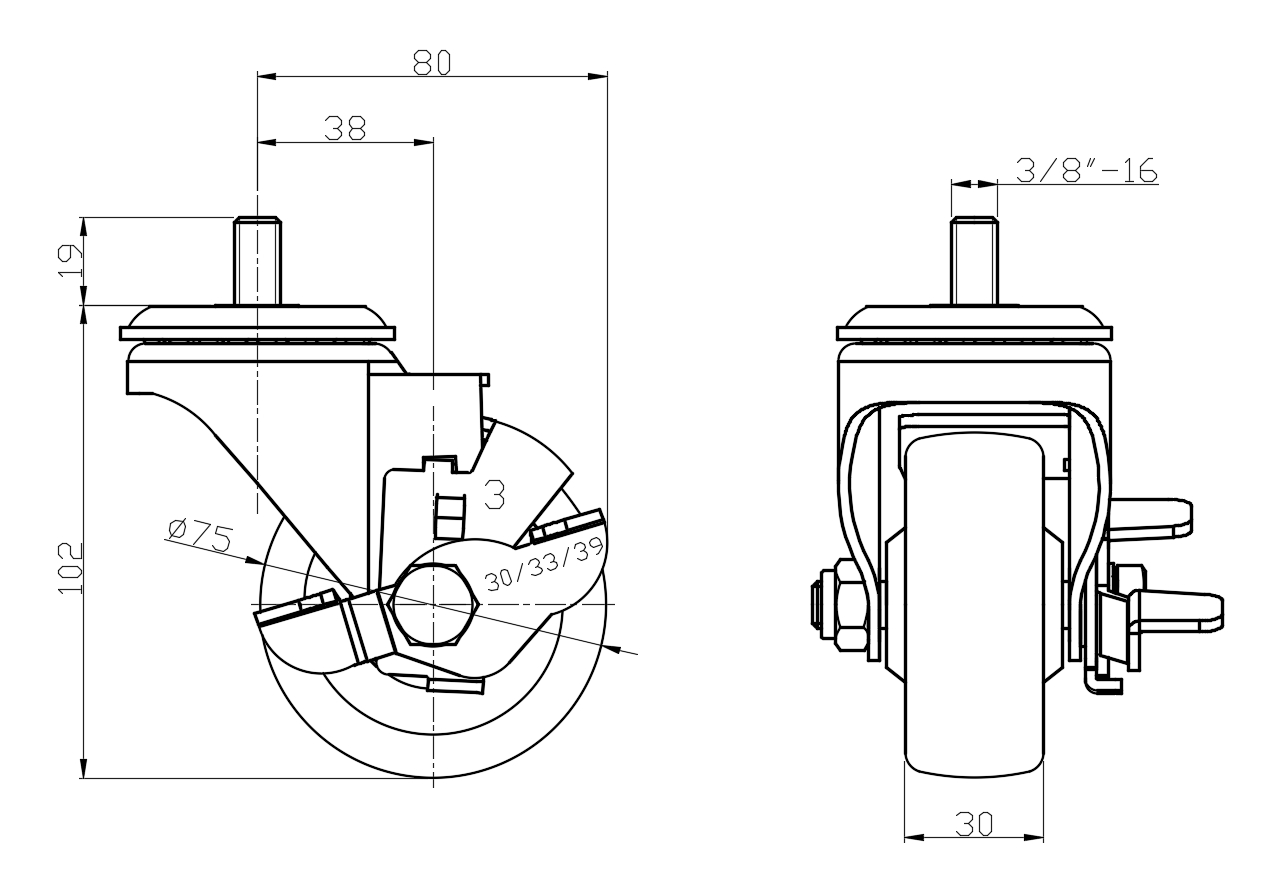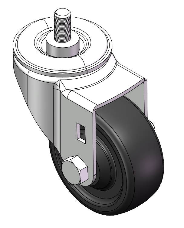 | Casters with Side Brakes and With locking system. Threaded Stem Riveted Pressed Fork – 3/8"-16 Zine-Plated, Mounting Type - Threaded Stem Reinforced Polypropylene Wheel Center, High-Quality Resilient Rubber Wheel Tread Bearing – Plain Bearing |