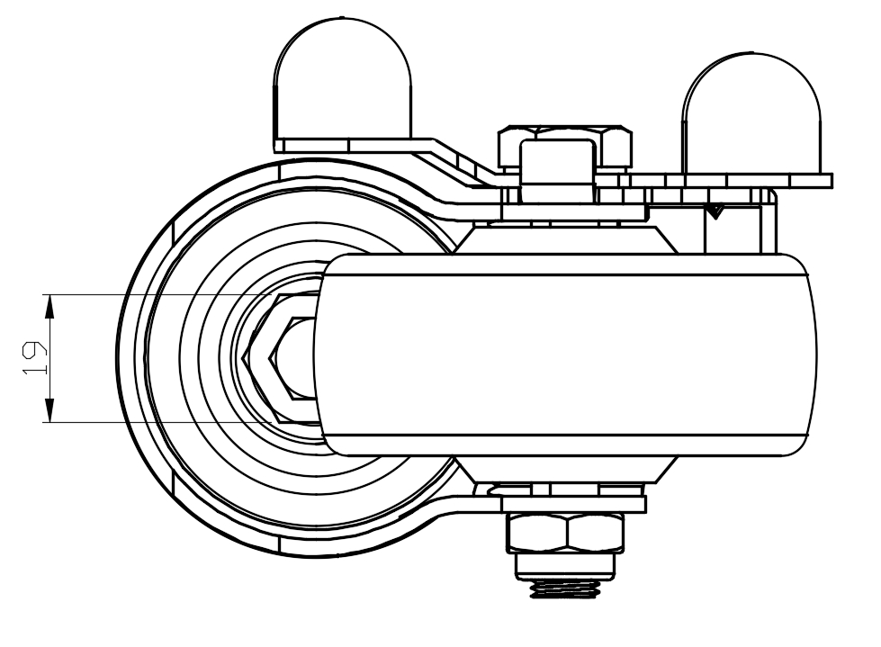 Zine-Plated, Mounting Type - Threaded Stem Reinforced Polypropylene Wheel Center, High-Quality Resilient Rubber Wheel Tread Wheels—Central tube |