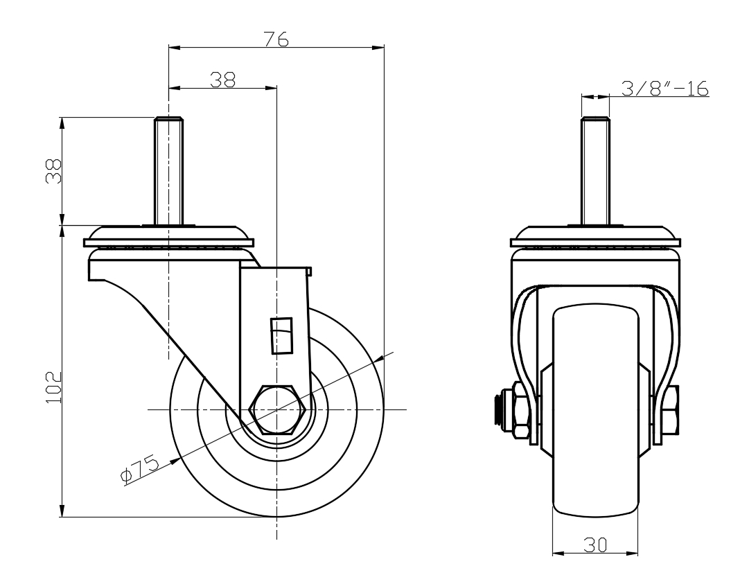 | Rubber Wheel Diameter × Wheel Width 75 x 30mm |
