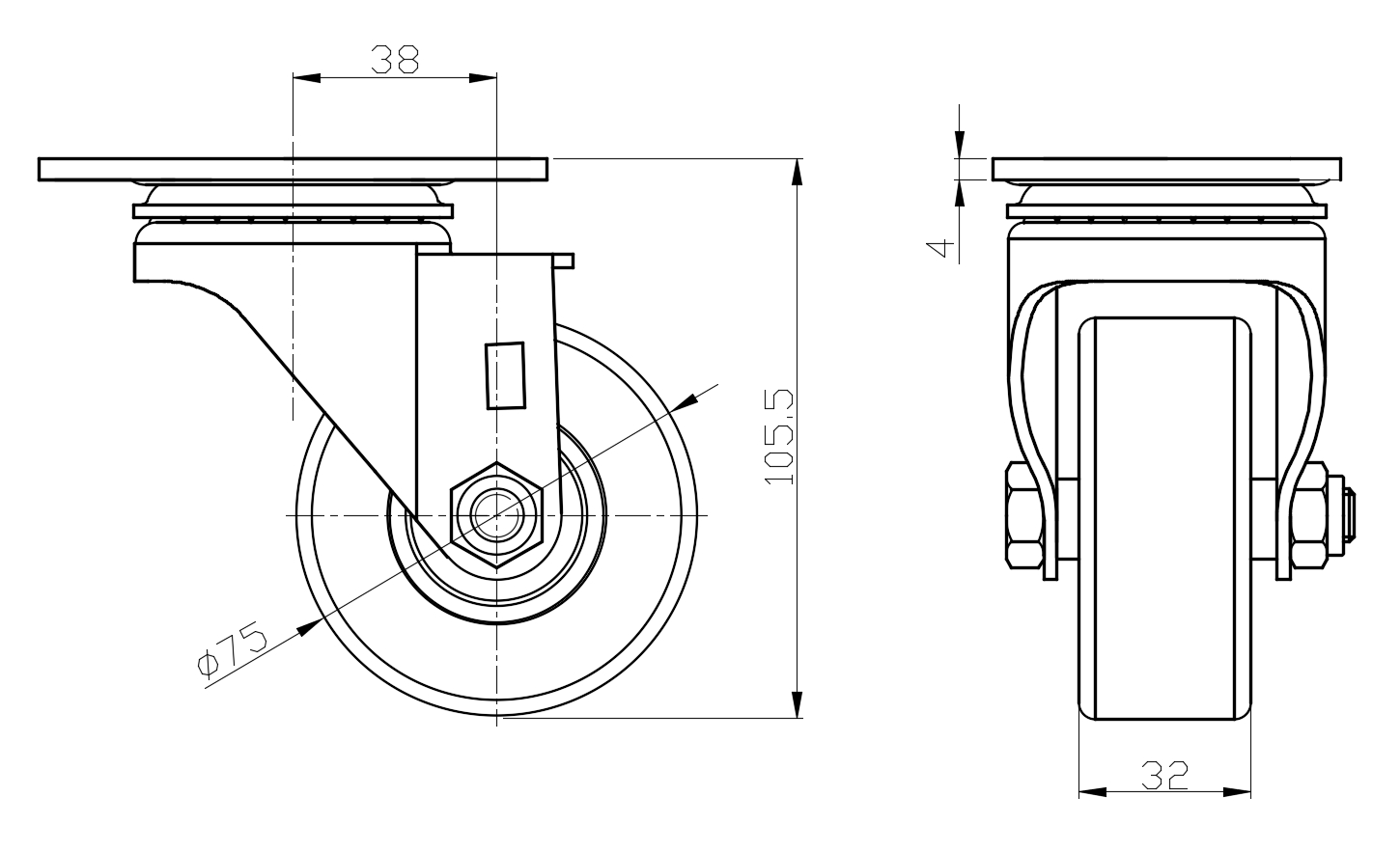 | Wheel tread: Made of high-quality polyurethane Wheel Center: cast iron core Drawings are for reference only and may differ from the product |