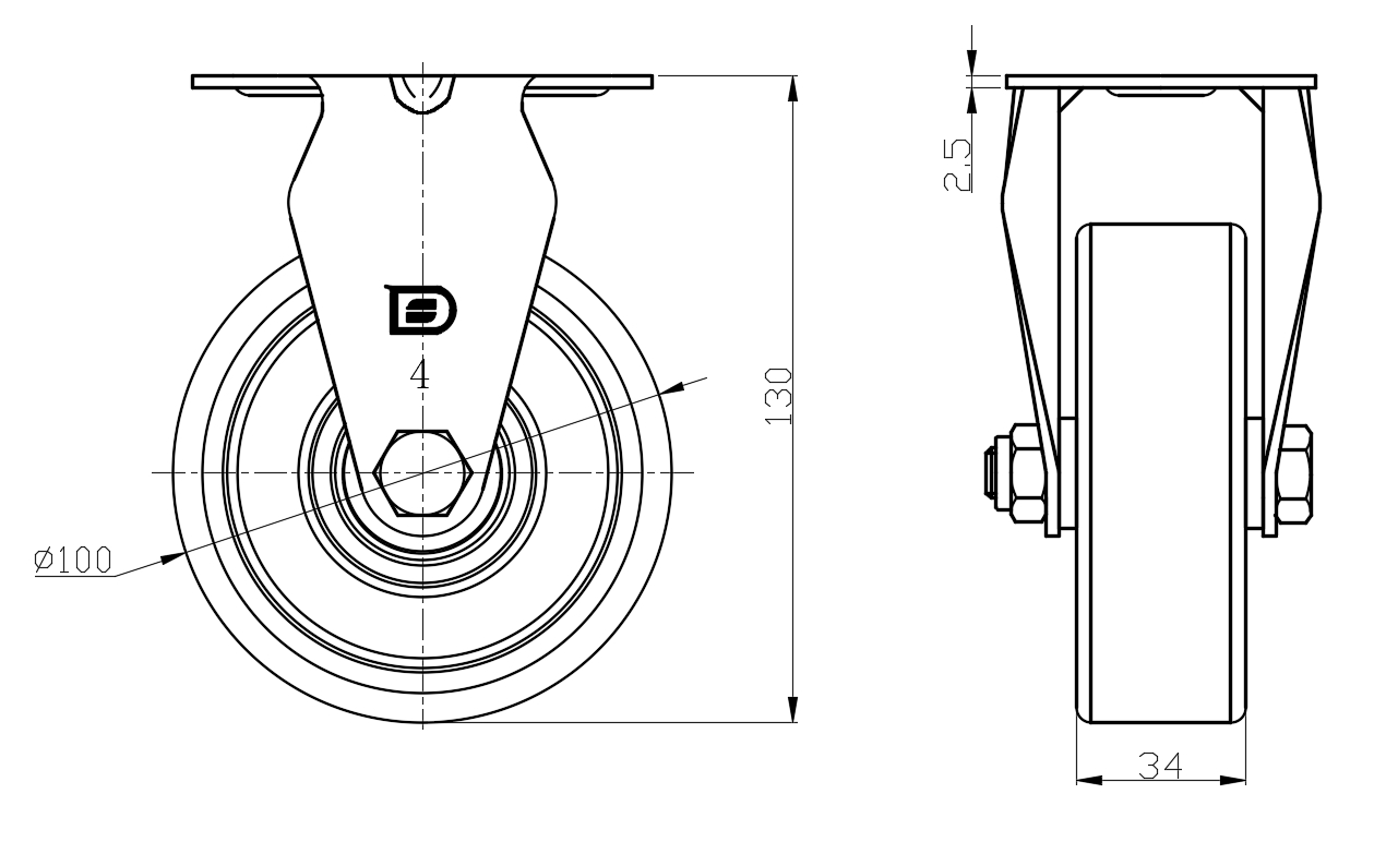 | Wheel tread: Made of high-quality polyurethane Wheel Center: cast iron core Drawings are for reference only and may differ from the product |