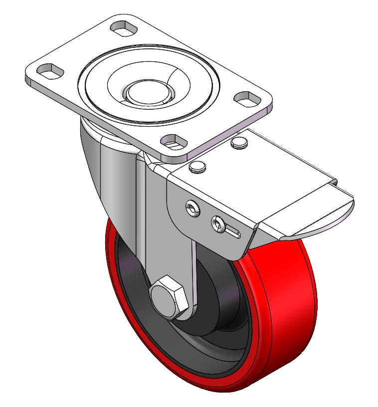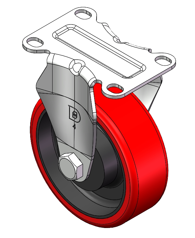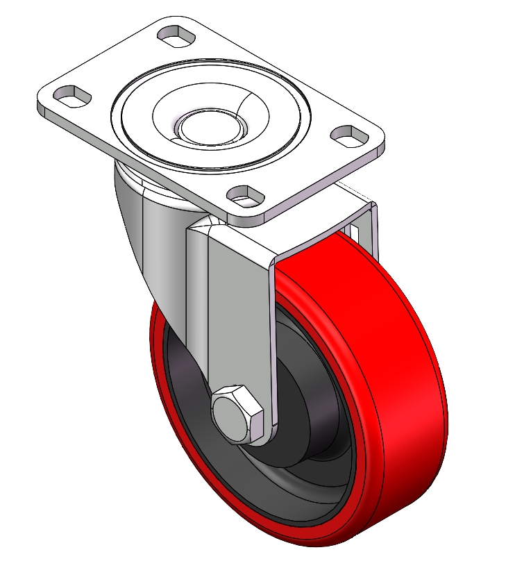 Zine-Plated, Top Plate (4T) Mounting Type system. Cast Iron core with High Quality Polyurethane Wheel Tread. Red color, Bearing with Ball Bearings. |
