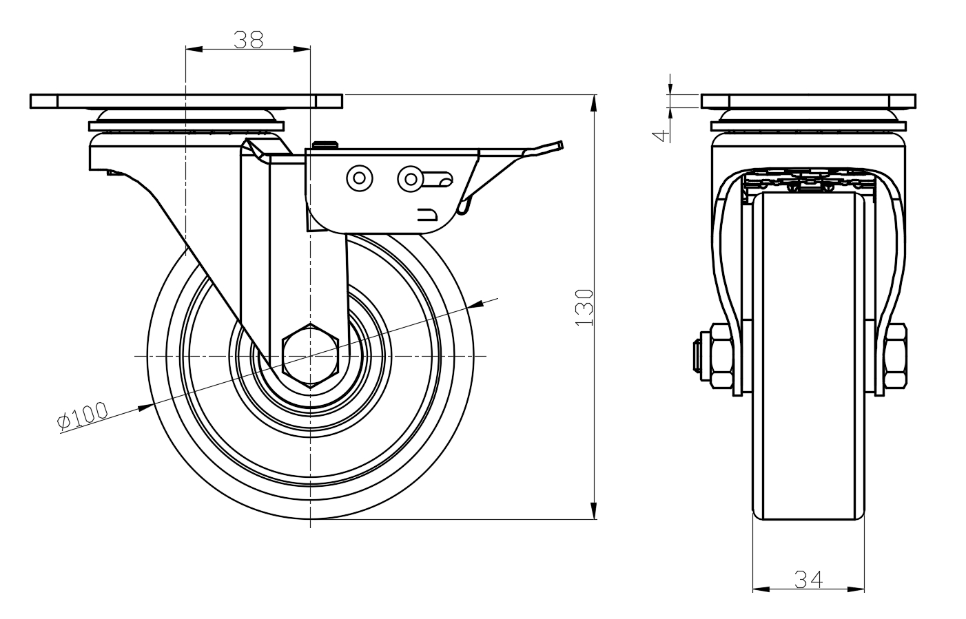 | Wheel tread: Made of high-quality polyurethane Wheel Center: cast iron core Drawings are for reference only and may differ from the product |