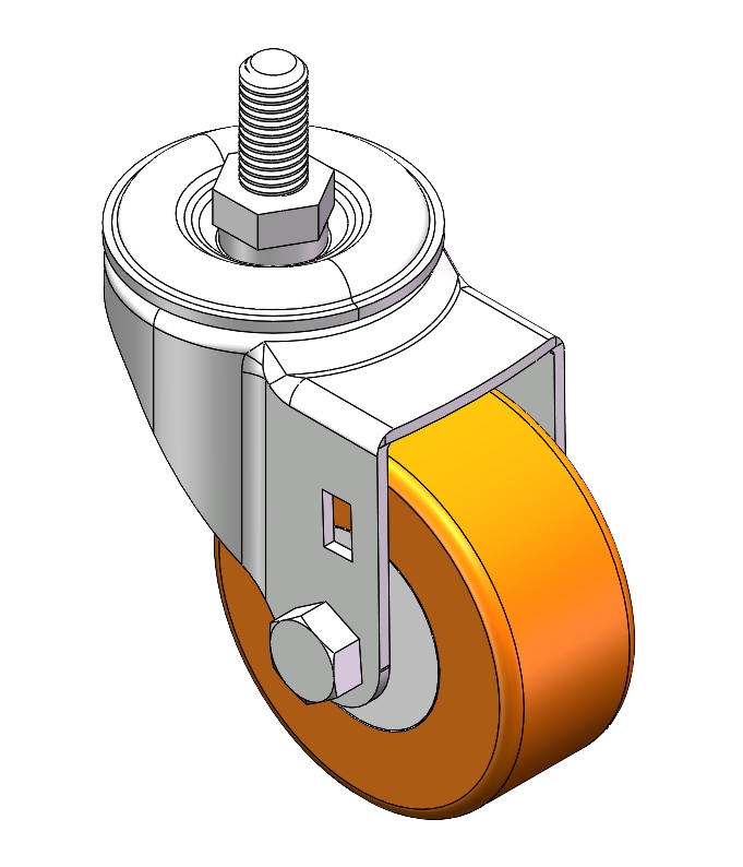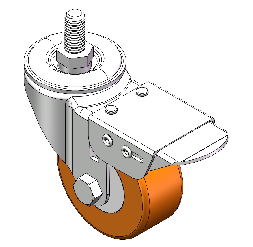 Zine-Plated, Mounting Type - Threaded Stem. Cast Iron core, High Quality Polyurethane Wheel Tread. Brown color, Ball Bearings. |