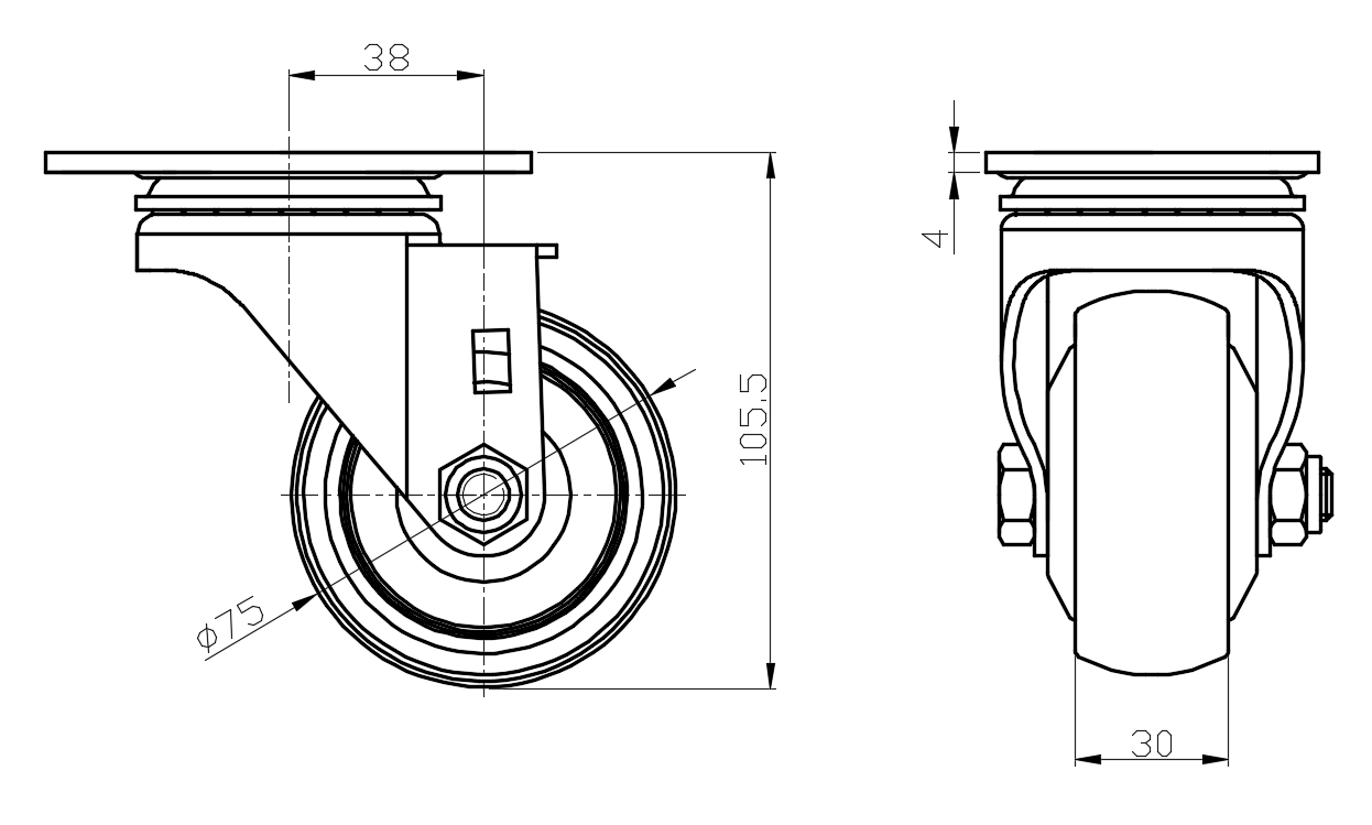 | Wheel tread: Made of high-quality polyurethane Wheel Center: aluminum core Drawings are for reference only and may differ from the product |