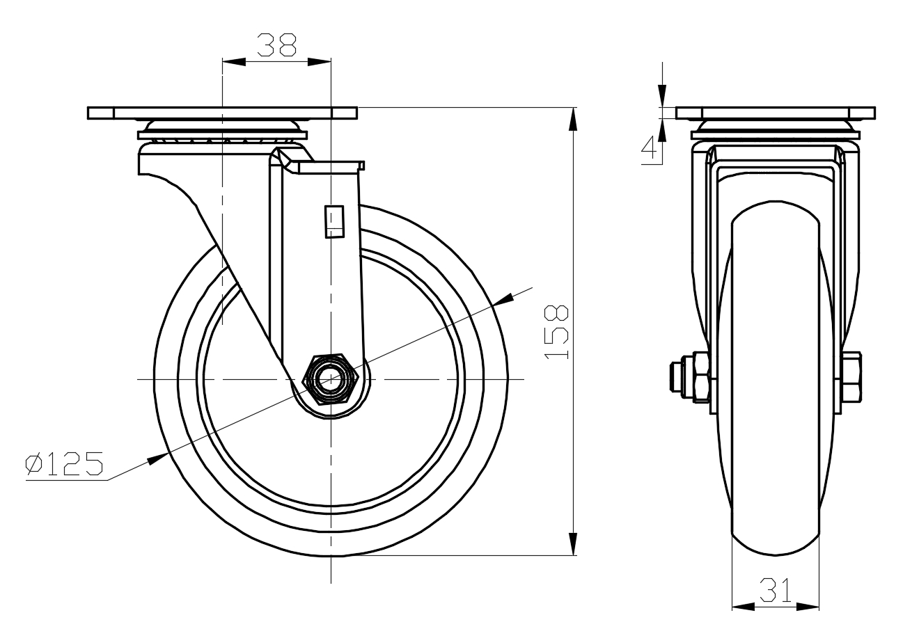 | AQPU (brown round) Wheel Diameter × Wheel Width 125 x 31mm |