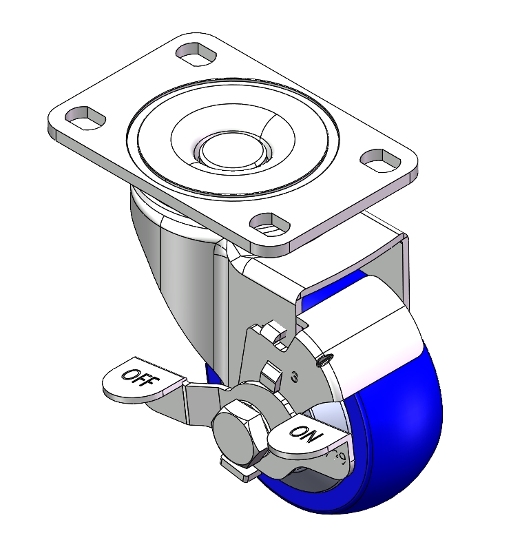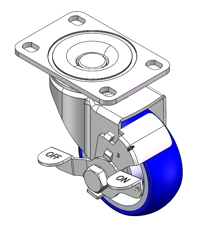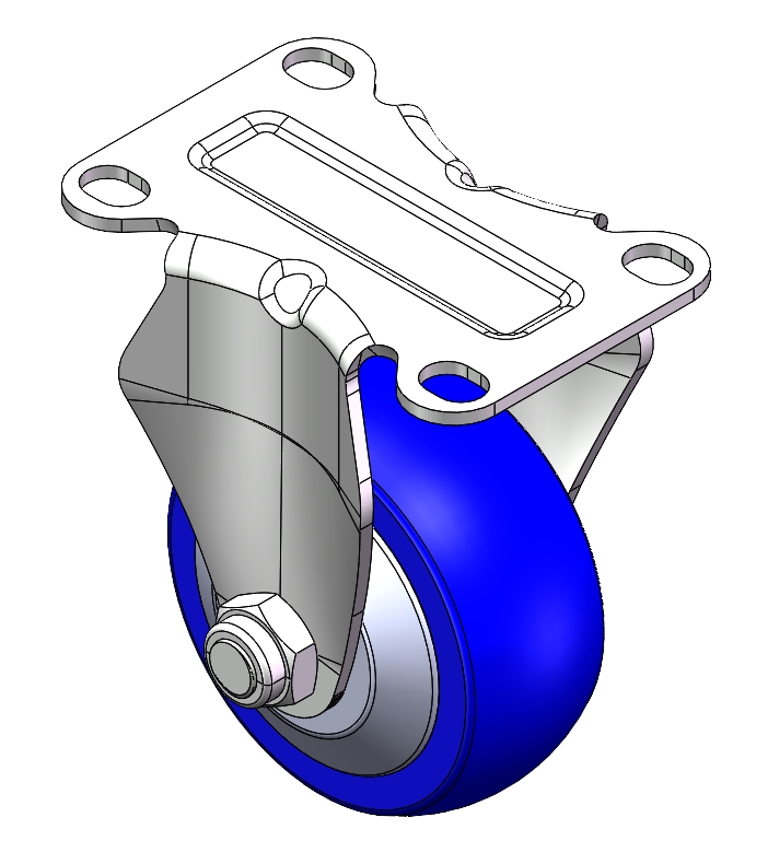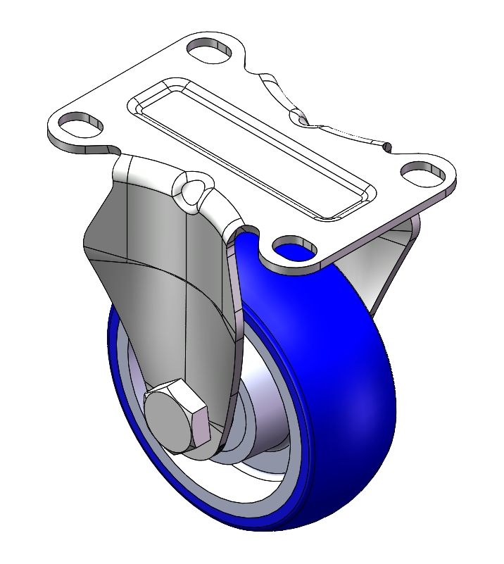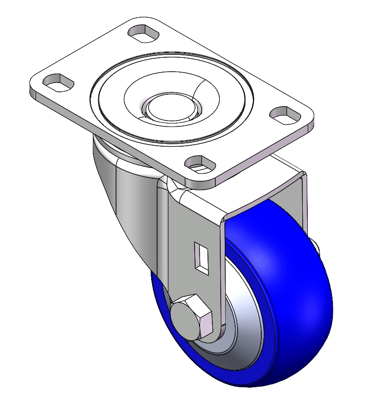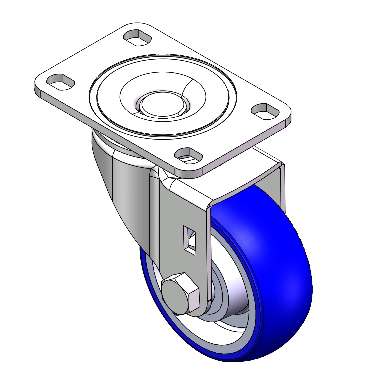 Zine-Plated, Mounting Type - Top Plate. Aluminum core, High Quality Polyurethane Wheel Tread. Blue color, Bearing—Ball Bearings. |