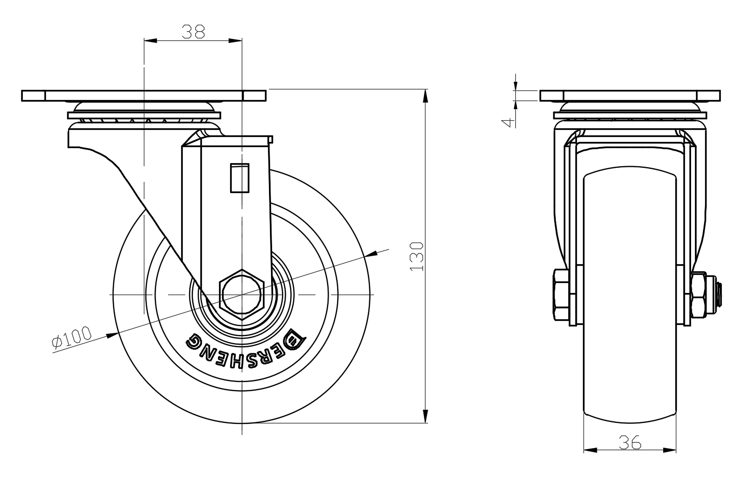 | Wheel tread: Made of high-quality polyurethane Wheel Center: aluminum core Drawings are for reference only and may differ from the product |