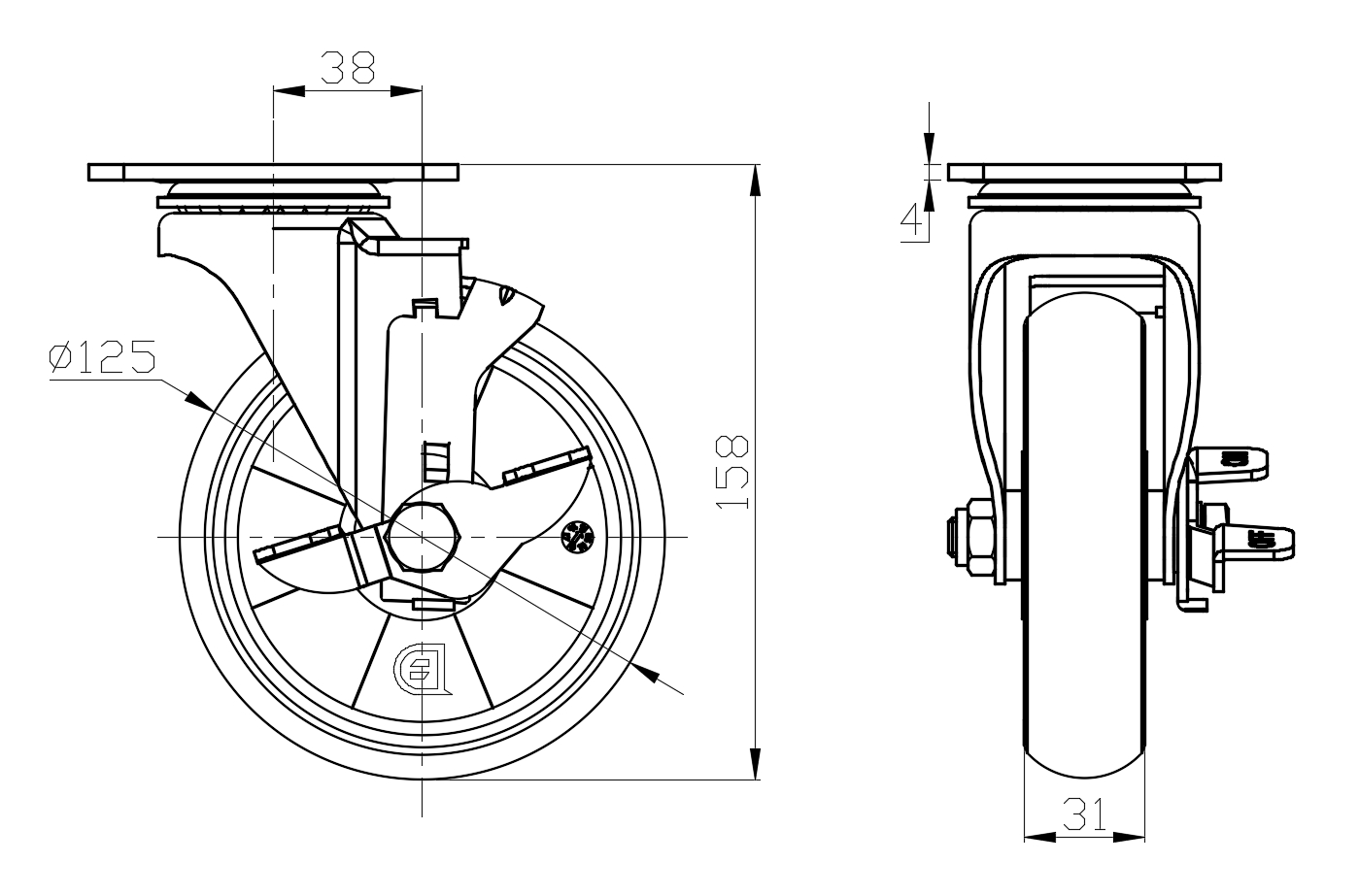 | AQPU (grey round) Wheel Diameter × Wheel Width 125 x 31mm |