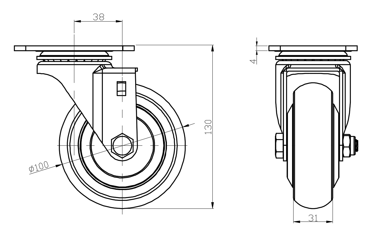 | Wheel tread: Made of high-quality polyurethane Wheel Center: aluminum core Drawings are for reference only and may differ from the product |
