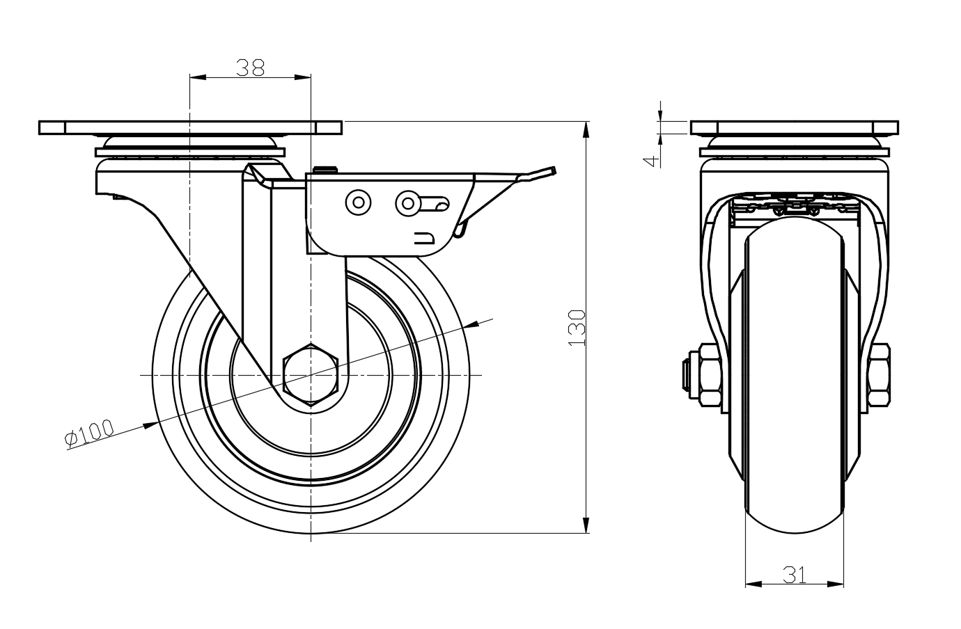 | AQPU (brown round) Wheel Diameter × Wheel Width 100 x 31mm |