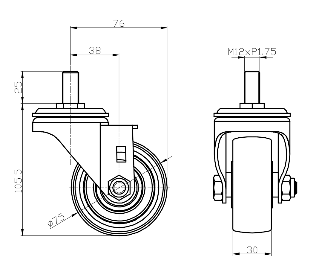 Swivel Caster, thread-Riveted Stamping Fork—M12-P1.75