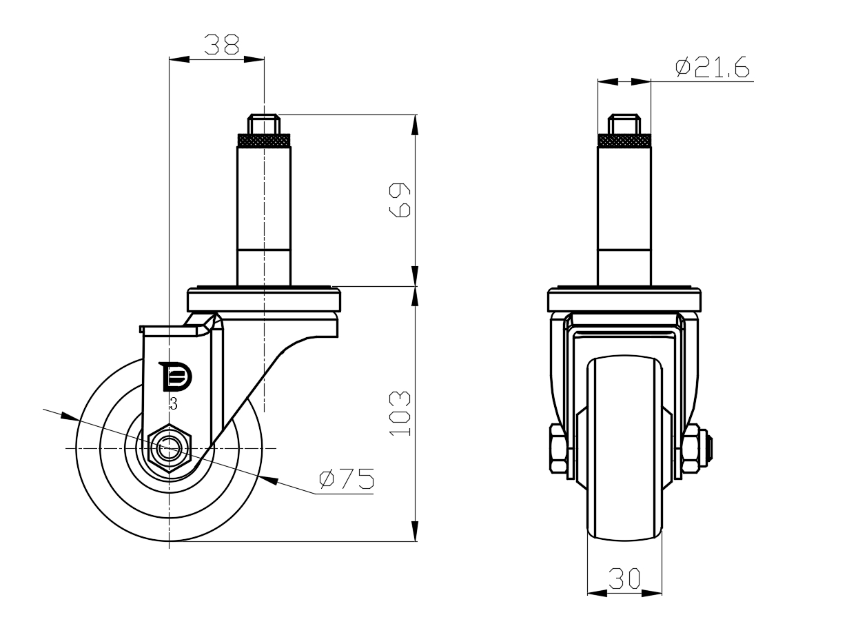 Metric Imperial Wheel Diameter 75mm Wheel Width 30mm |