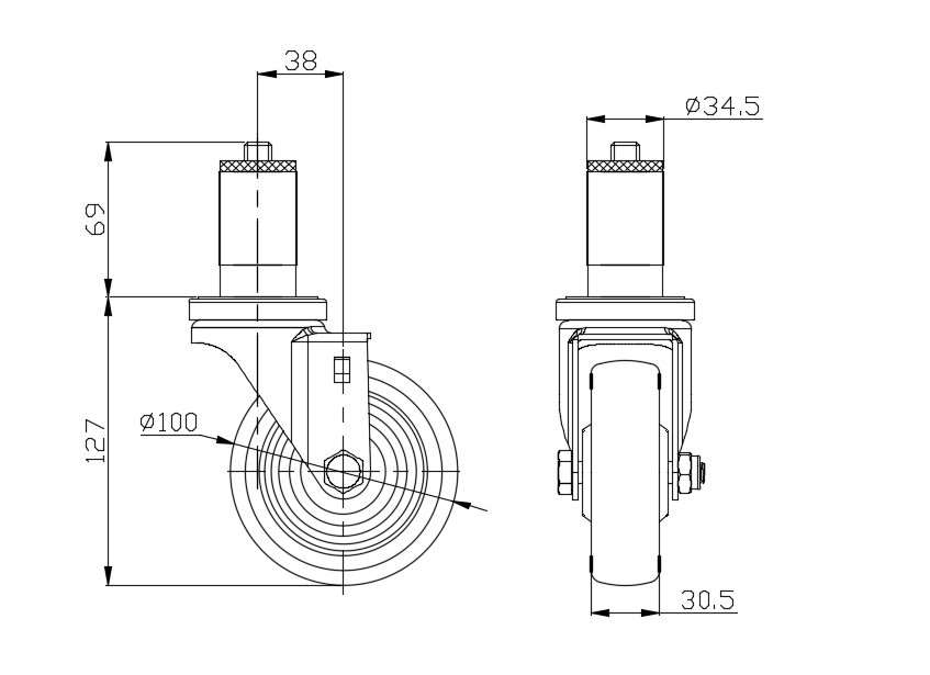 Metric Imperial Wheel Diameter 100mm Wheel Width 30.5mm |
