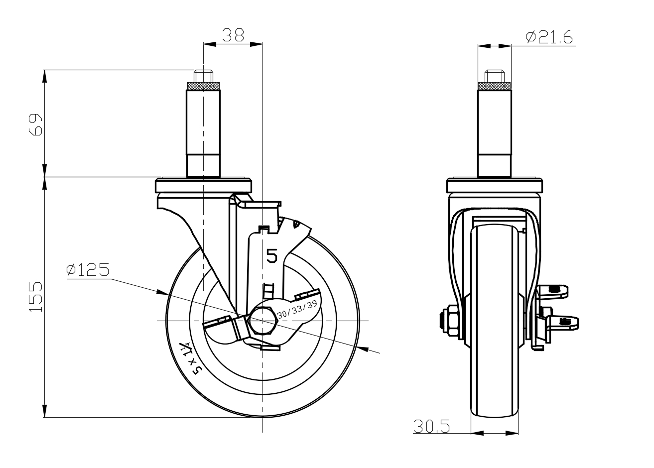 | Rubber Wheel Diameter × Wheel Width 125 x 30.5mm |