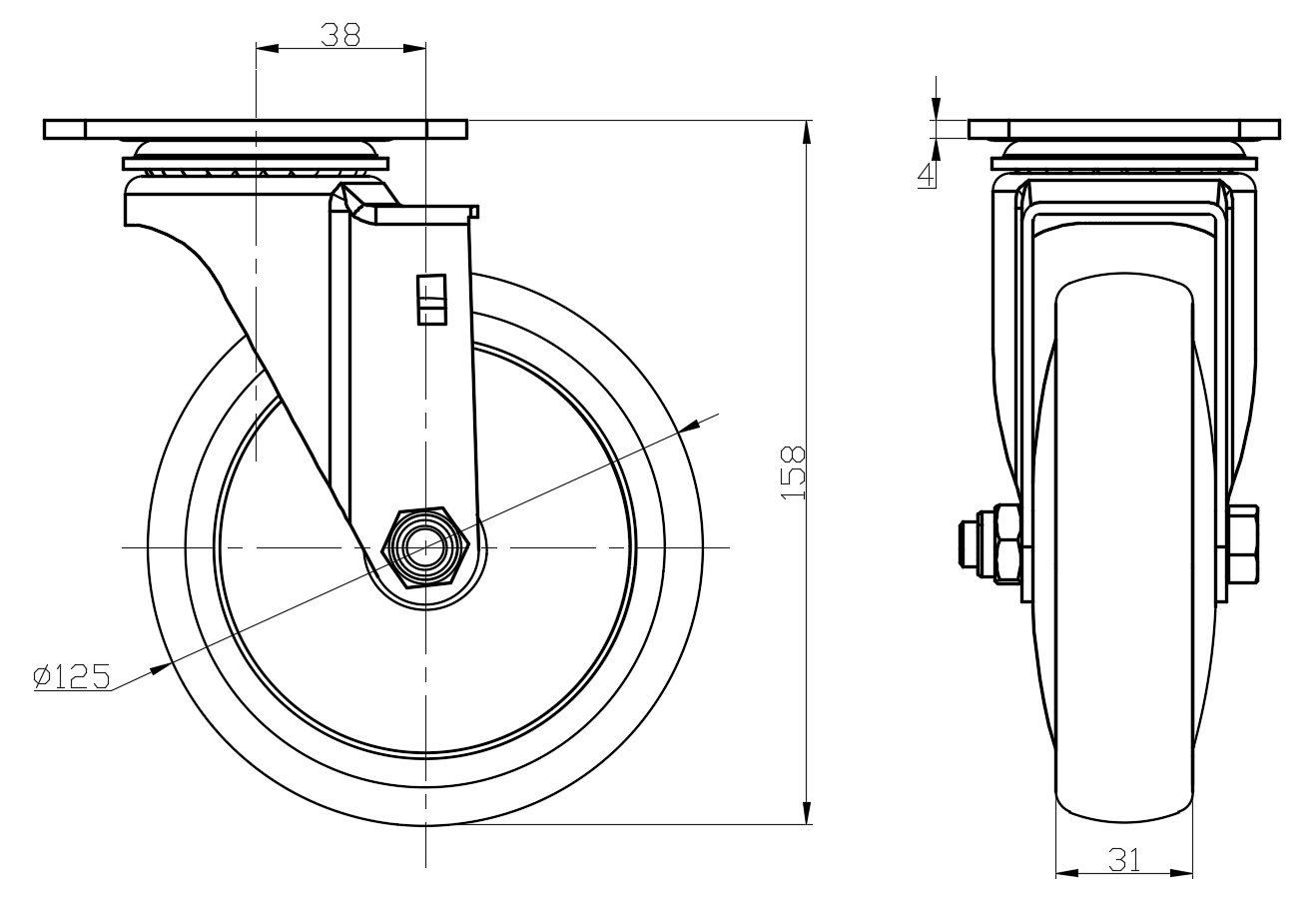 | PPR E-Conductive (black-gray) Wheel Diameter × Wheel Width 125 x 31mm |