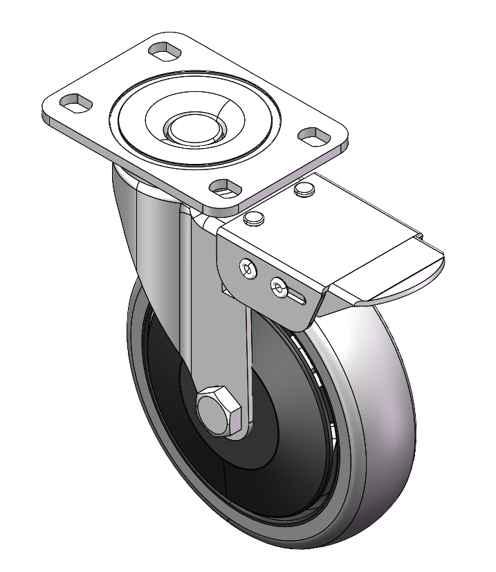 | Castors with Total Brake locking system. Top Plate Riveted Fork - 75 x 45 mm (3" x 1-3/4") Bolt Hole Spacing Surface Zine-Plated, Top Plate (4T) Mounting Type Impact resistant High-quality Impact Resistance Polypropylene Wheel Center,High-Quality Thermoplastic Rubber (TPR) Wheel Tread Black grey, Bearing - Ball Bearing. |