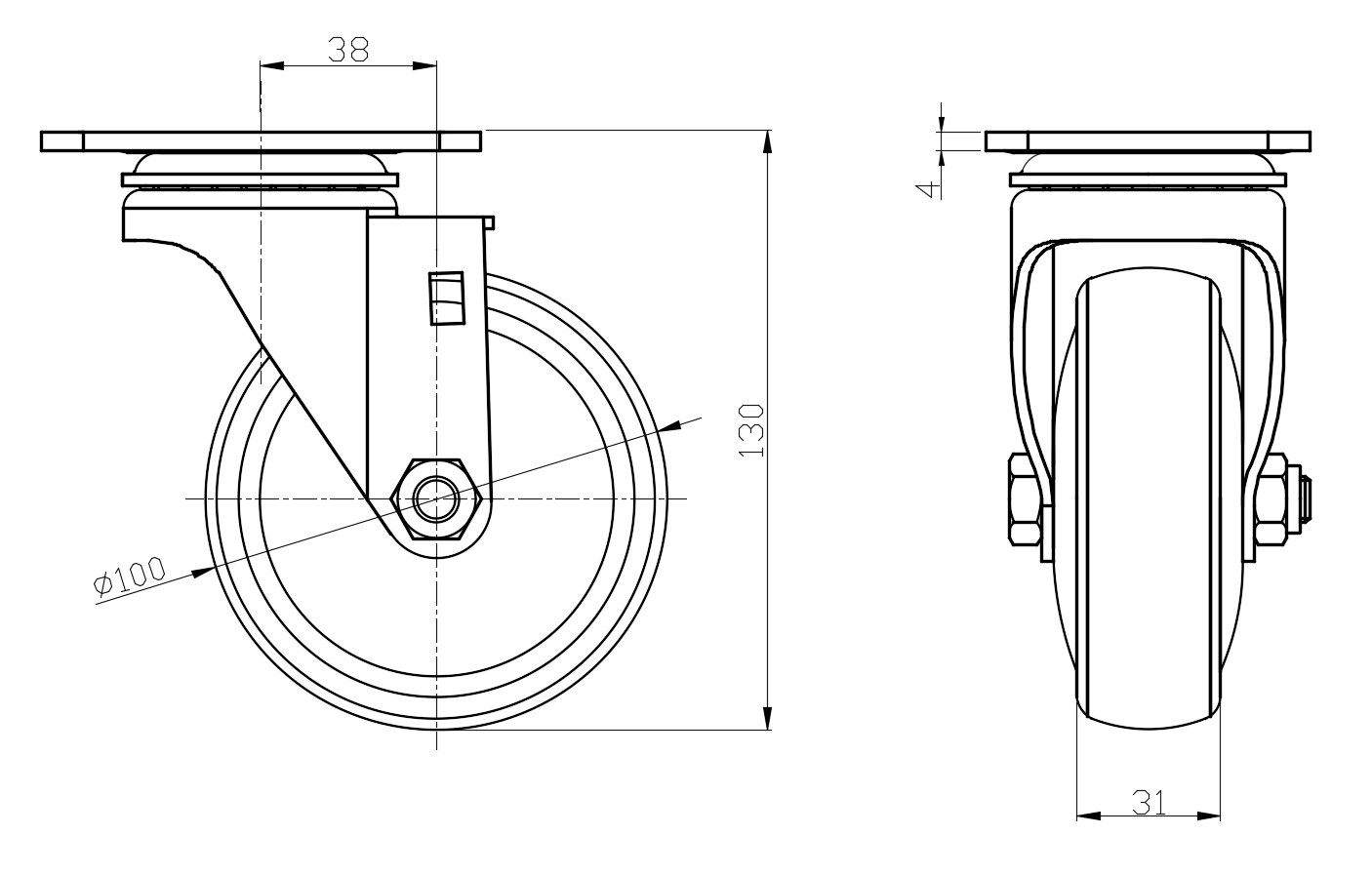 | Swivel castor, Fork Riveted Stamping Fork - premium hole Surface Zine-Plated, Top Plate (4T) Mounting Type Impact resistant High-quality Impact Resistance Polypropylene Wheel Center,High-Quality Thermoplastic Rubber (TPR) Wheel Tread Pearl grey, wheel - Plain Bearing. |
