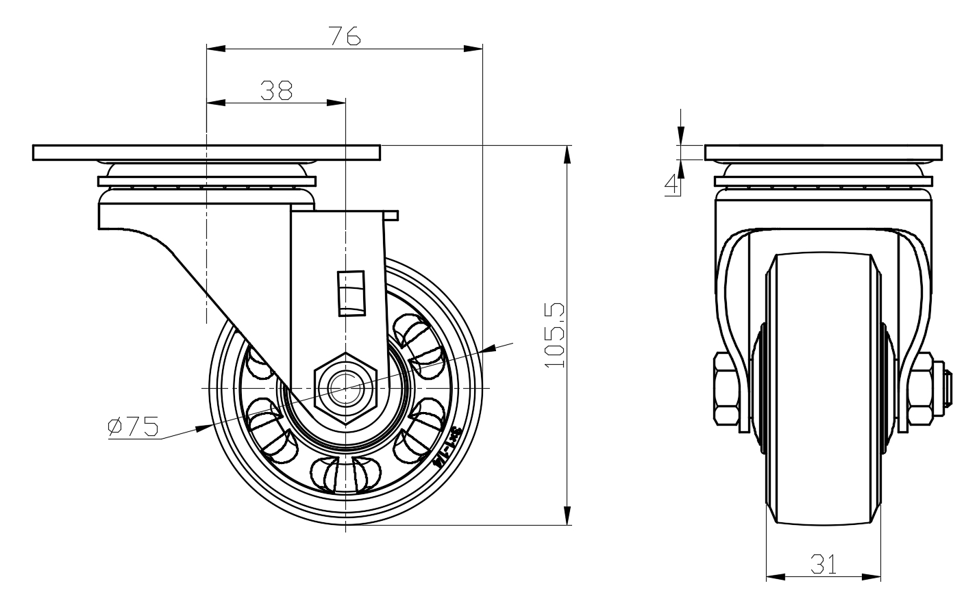 | Swivel castor, Top Plate Riveted Stamping Fork - premium hole Surface Zine-Plated, Top Plate (4T) Mounting Type device Reinforced impact resistant High-quality Impact Resistance Polypropylene Wheel Center,High-Quality Thermoplastic Rubber (TPR) Wheel Tread Pearl dark gray, Bearing - Ball Bearing. |
