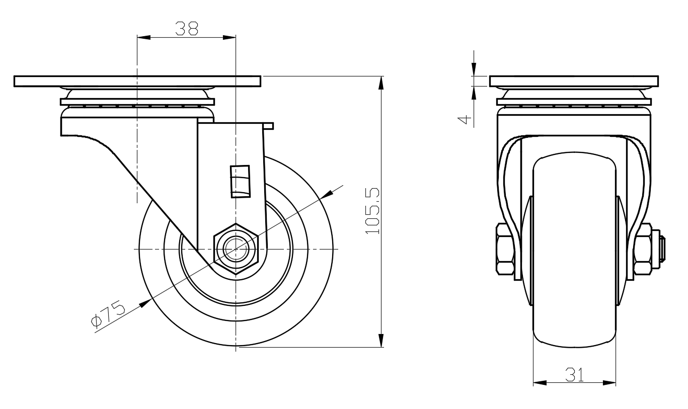 | Rigid castor, one-piece Stamping Fork - 75 x 45 mm (3" x 1-3/4") Bolt Hole Spacing Surface Zine-Plated, Mounting Type - Top Plate High-quality Impact Resistance Polypropylene Wheel Center,High-Quality Thermoplastic Rubber (TPR) Wheel Tread Gray, Bearing - Ball Bearing. |