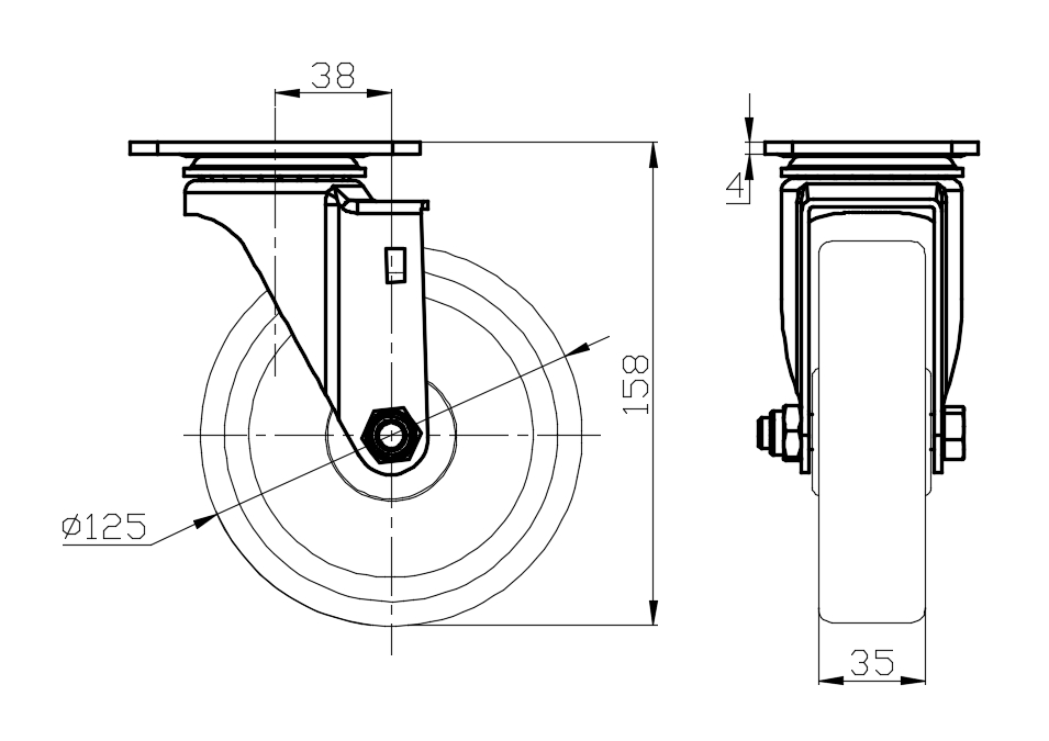| PP (black) Wheel Diameter x Wheel Width 125 x 35mm |