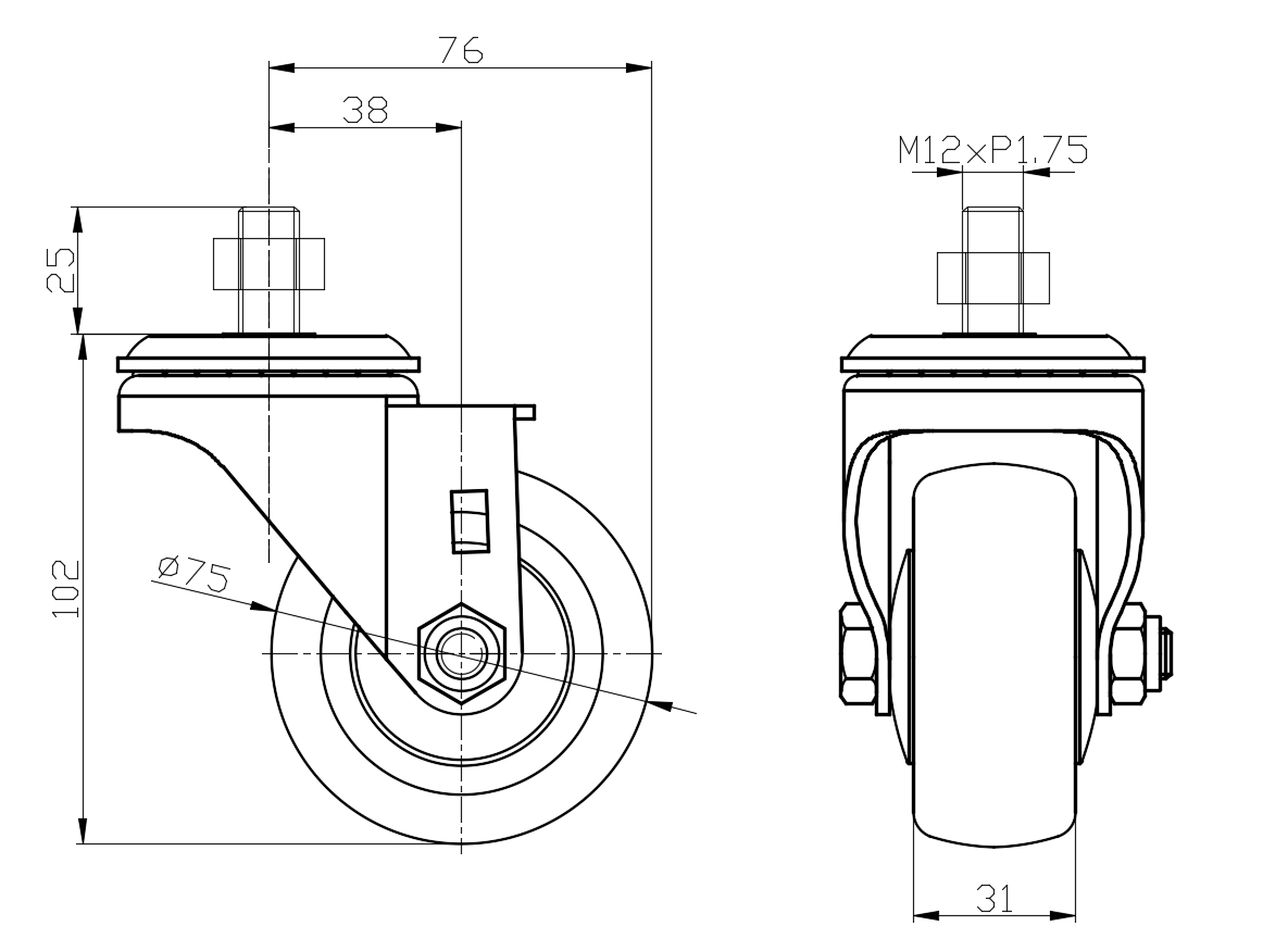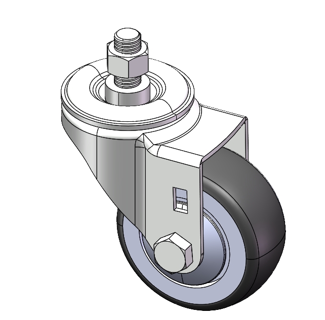 | Swivel Caster, thread-Riveted Stamping Fork—M12-P1.75 Extended control lever surface, Mounting Type - Threaded Stem High-quality Impact Resistance Polypropylene Wheel Center,High-Quality Thermoplastic Rubber (TPR) Wheel Tread Dark gray, Bearing—Ball Bearing. |