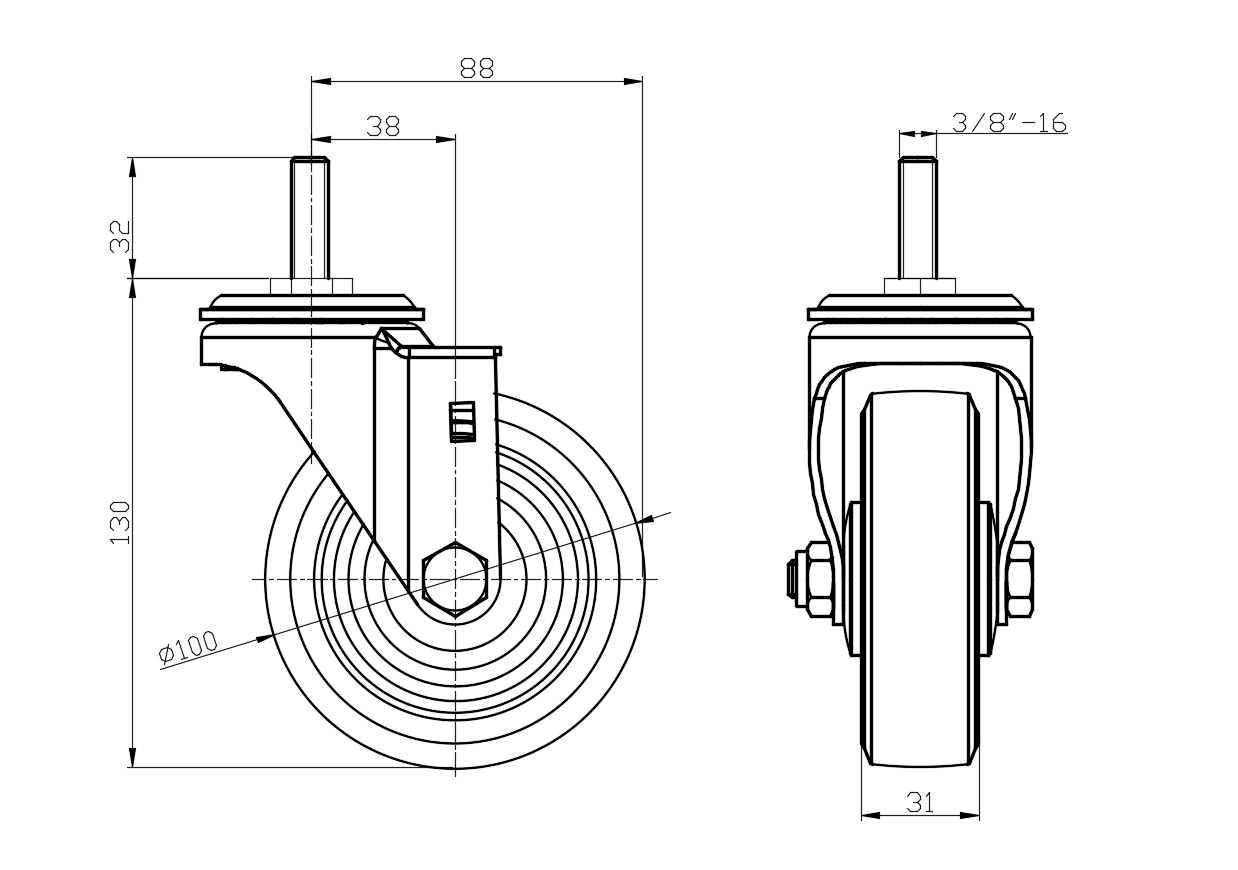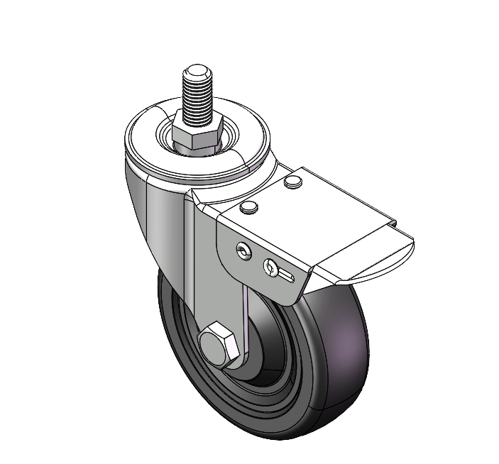 | Swivel Caster, thread-Riveted Stamping Fork—3/8"-16 Extended control lever surface, Mounting Type - Threaded Stem device Reinforced Polypropylene, High-Quality Resilient Rubber Wheel Tread Wheel—Anti-thread wheel cover |